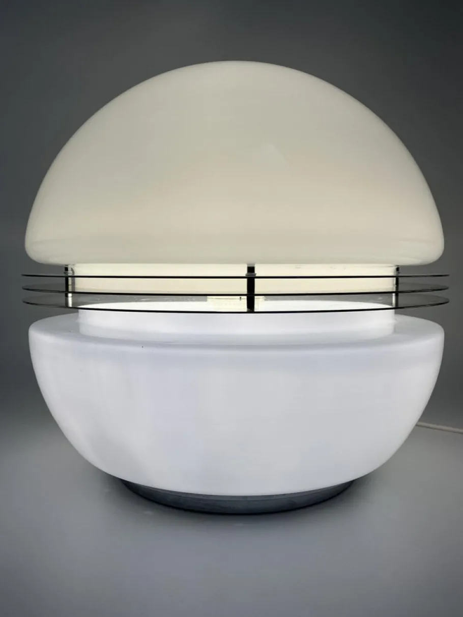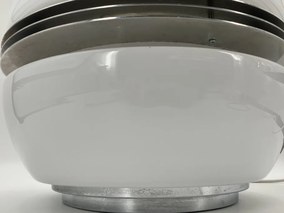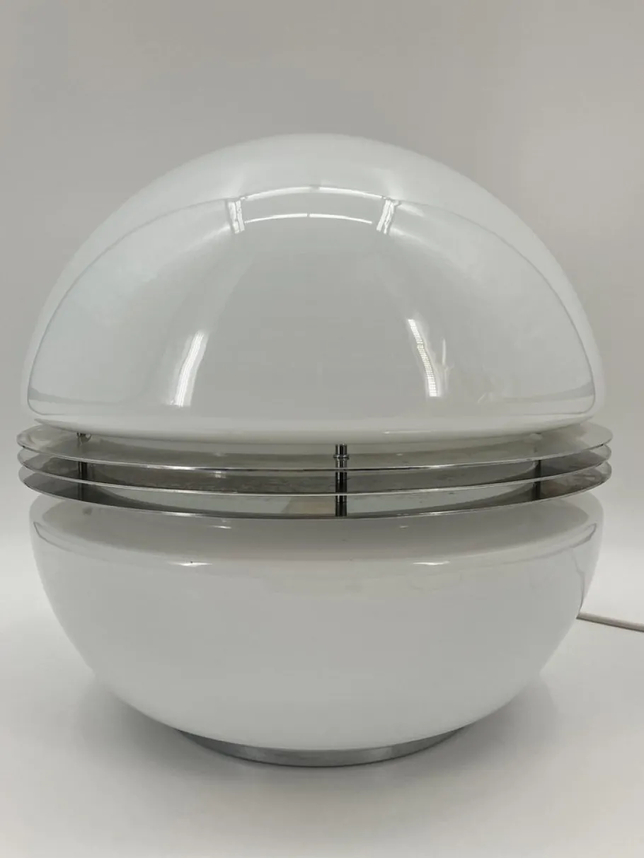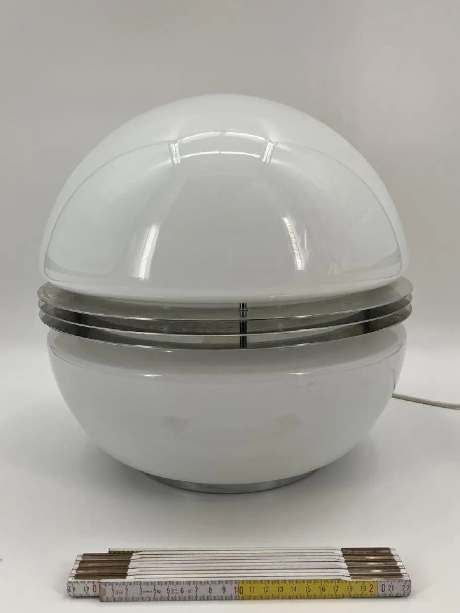*white satin glass. The upper and lower glass hemispheres are completely separated so that different lighting is also possible. See photos.