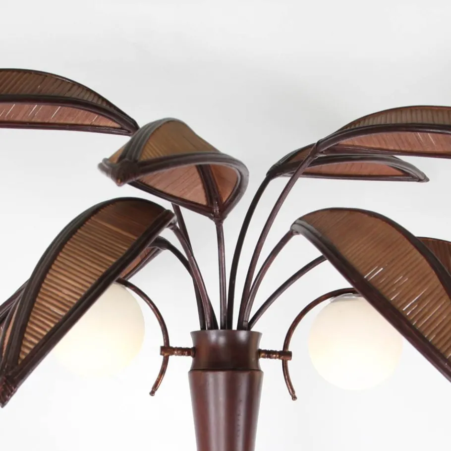 10 removable woven rattan fins, 2 lights in opaline glass “coconuts”.