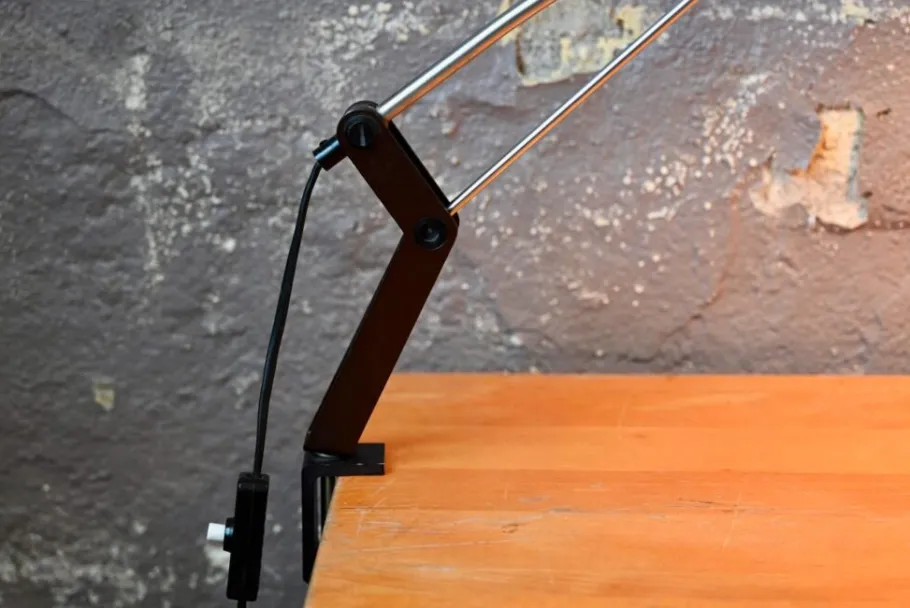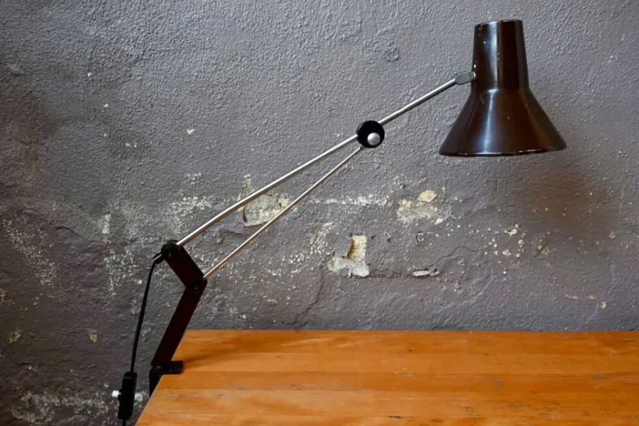 French work architect lamp from the 1960s brown two arms vintage desk.