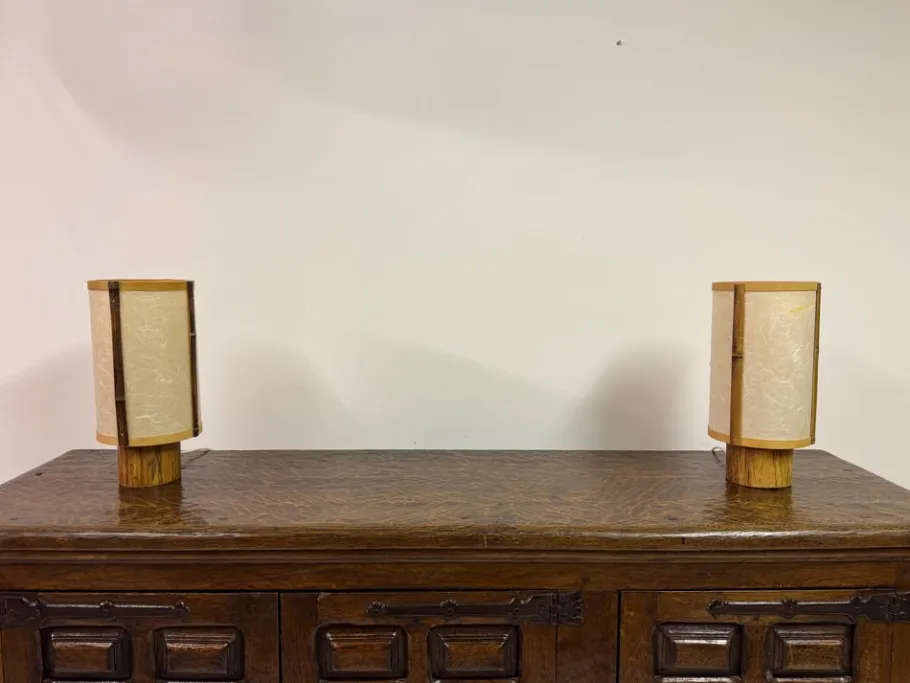 The lamps show an affinity with the work of George Nakashima, where craftsmanship, natural materials, and purity of form come together with quiet authority. Elegant yet understated, they sit at the intersection of Japanese and mid-century design influences, embodying both warmth and refinement.