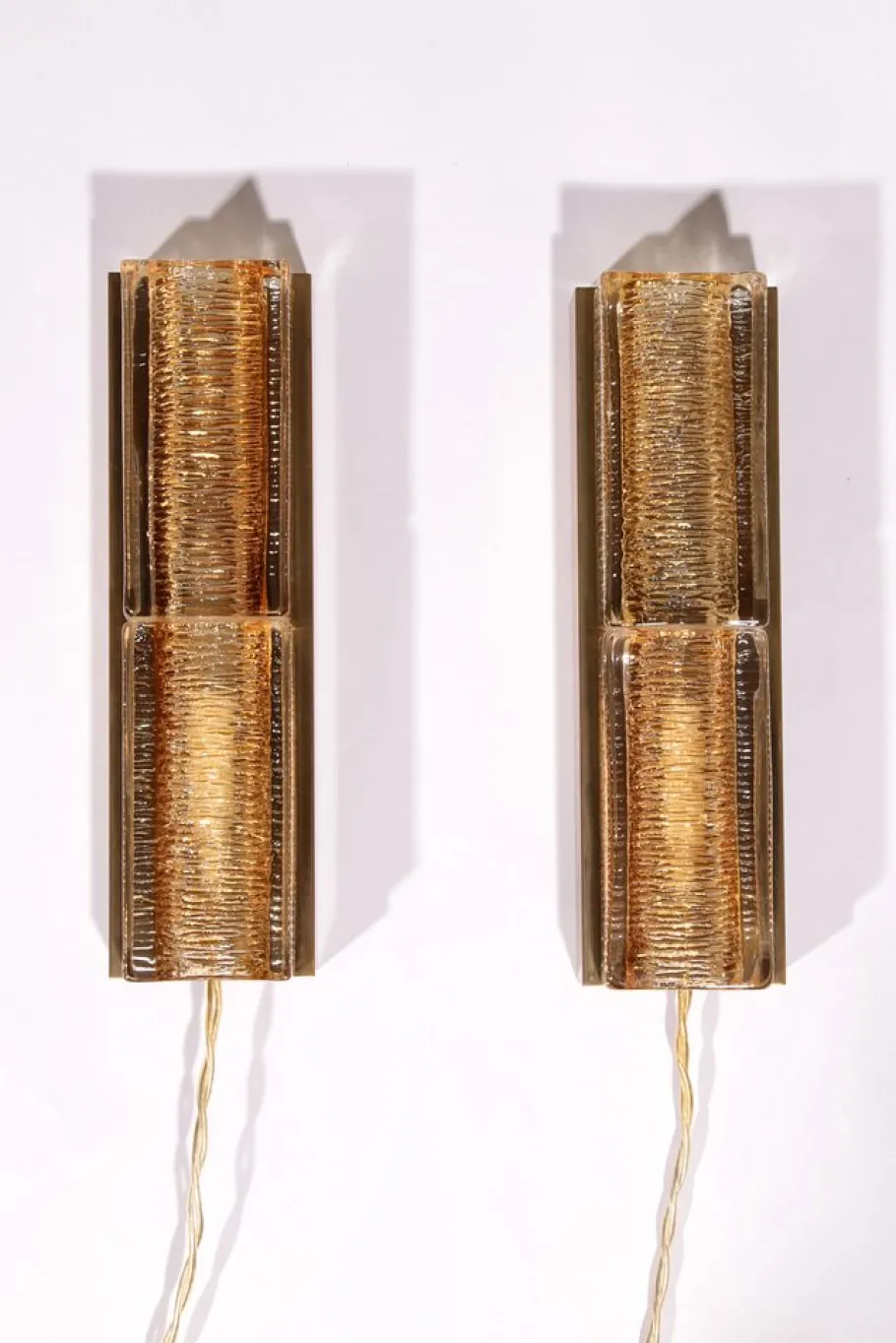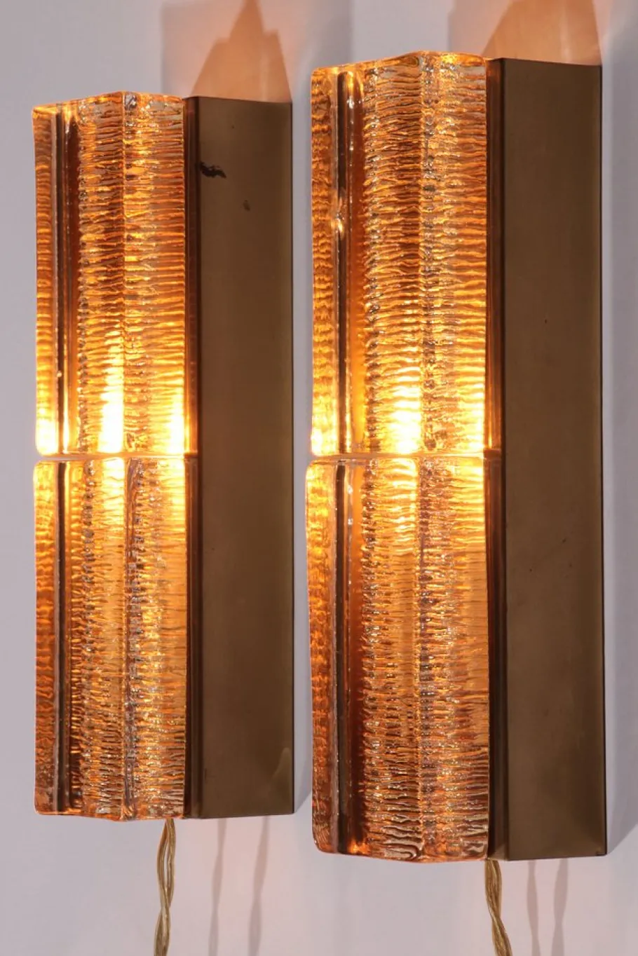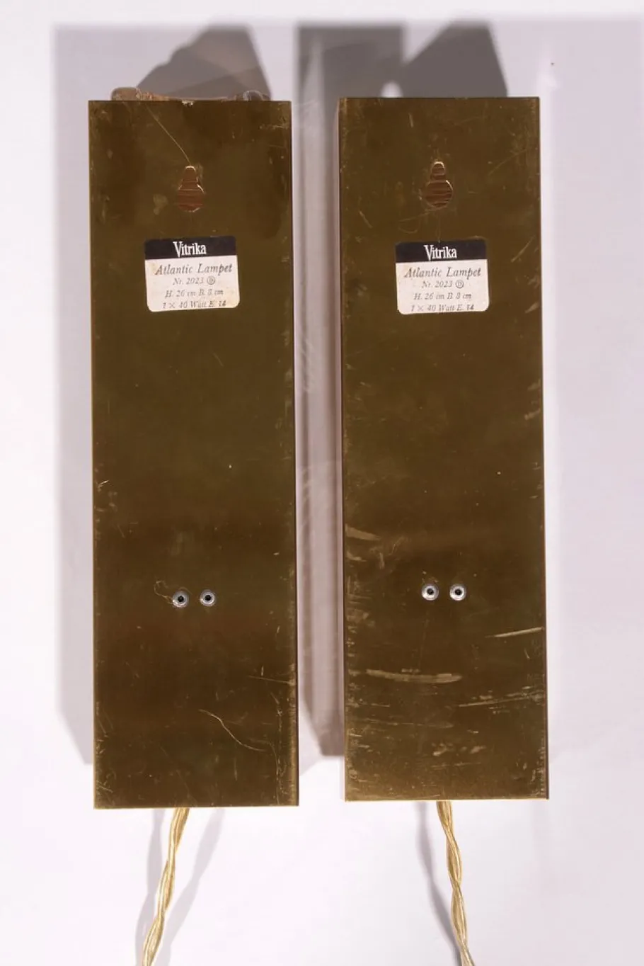 The lamps are in very good vintage condition, with both the glass and brass parts carefully preserved, showing only minimal signs of age. As authentic pieces from Vitrika, these wall lamps are not just lighting fixtures but collectible design objects that add character and value to any interior.