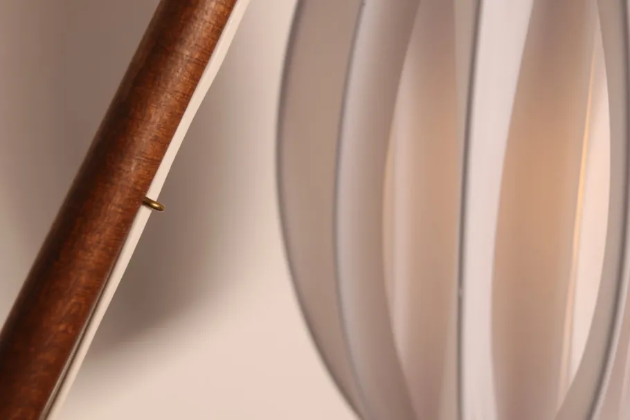 The lampshade made of cellulose acetate, seems to float, especially in the dark.