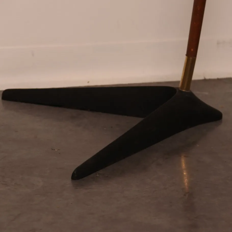 The arm is made of solid teak with brass details on the stem.