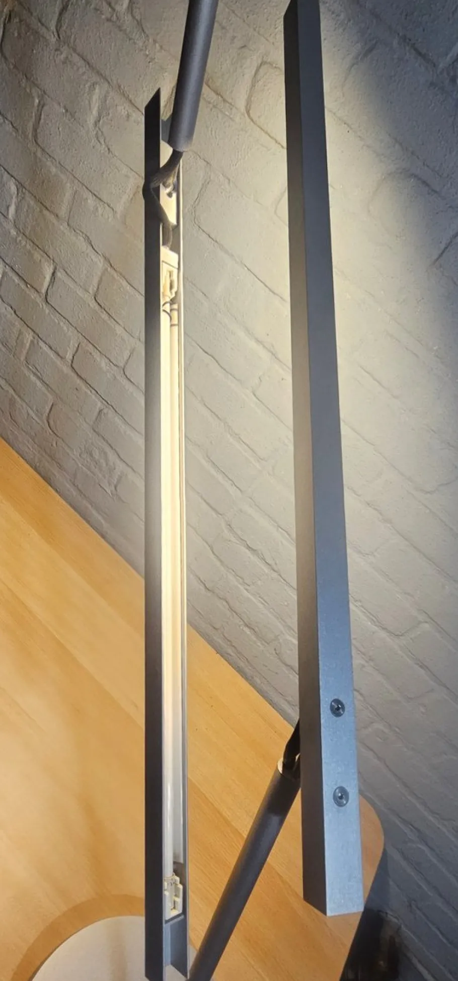 This iconic design combines pure minimalist lines with functional perfection, characteristic of Van Severen’s work. Executed in anodised aluminium with a slender adjustable arm and flat round base.