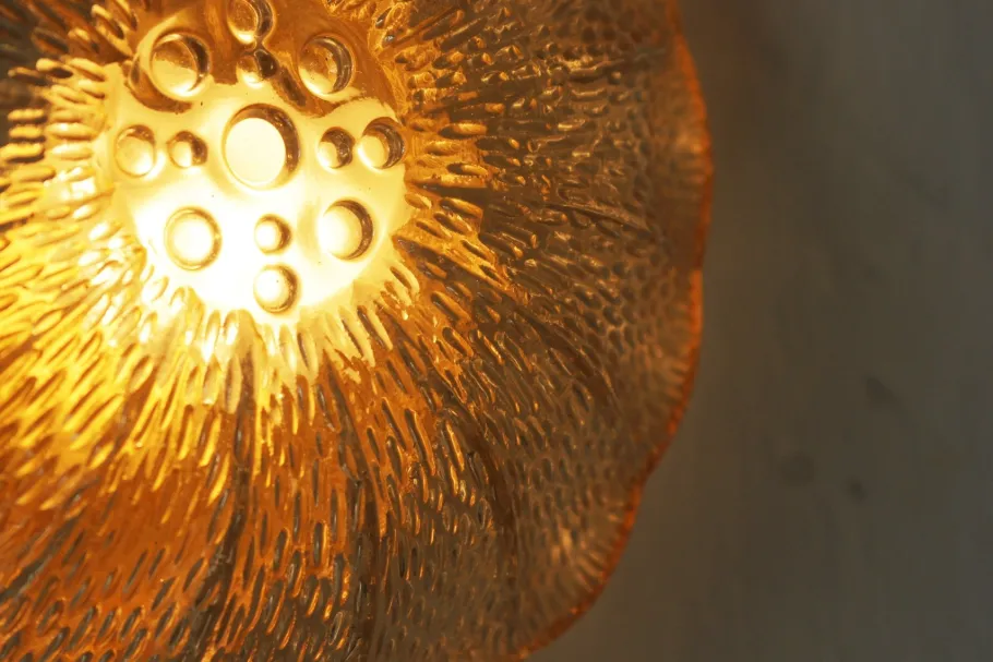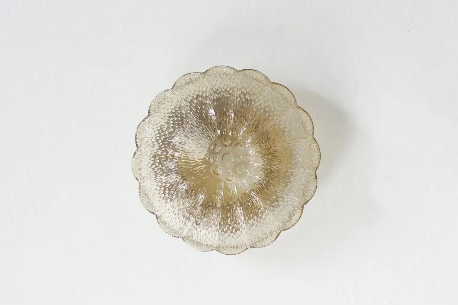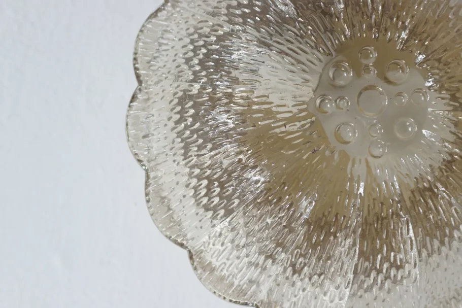 The glass ceiling lamp in the shape of a flower is more than just a source of light – it is a decorative glass sculpture that adds softness and romantic character to the interior. The delicate straw-colored glass makes the lamp emit a warm, golden light, perfect for creating atmosphere.
