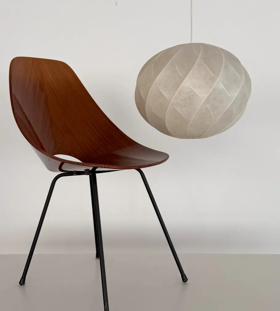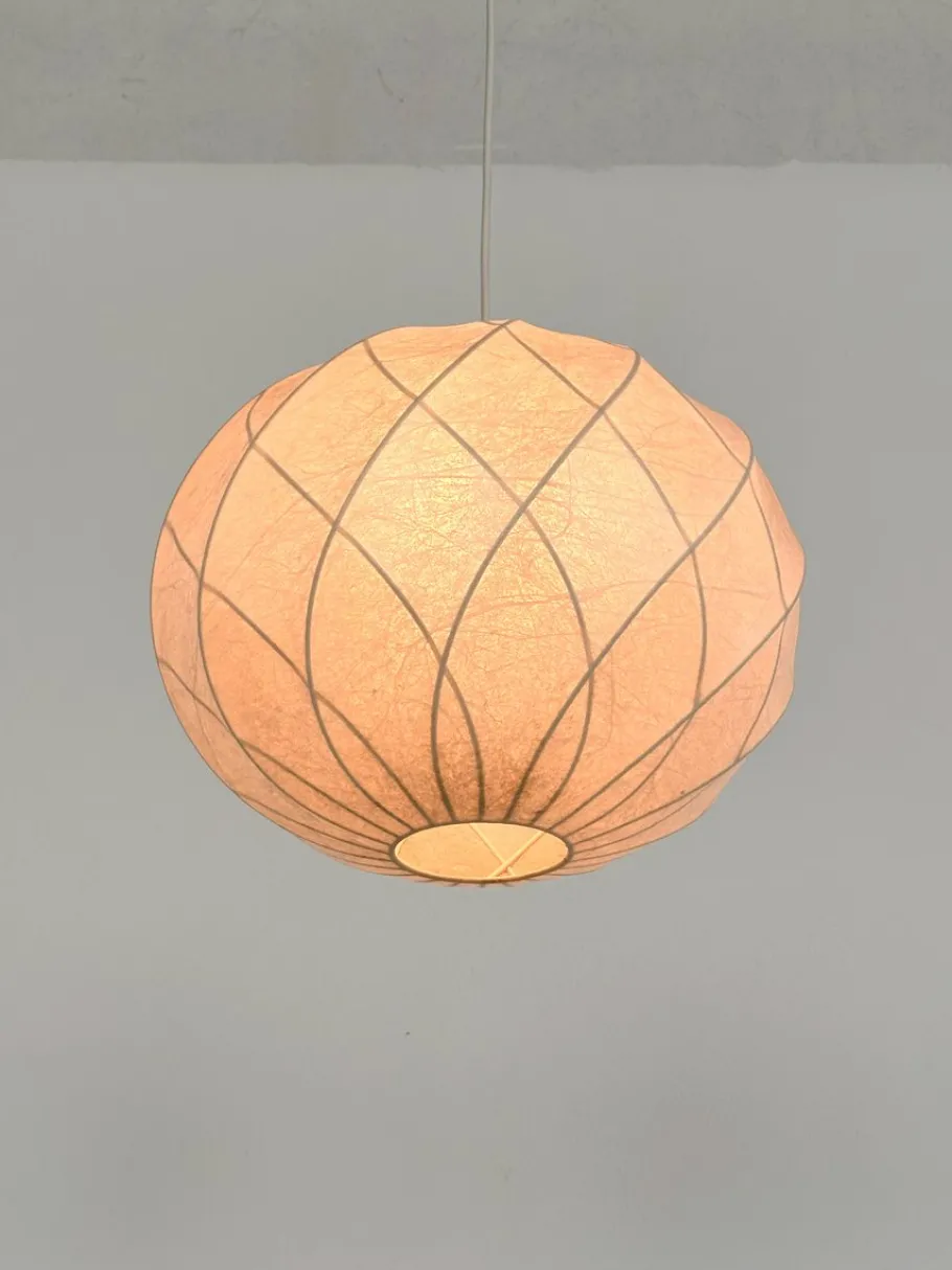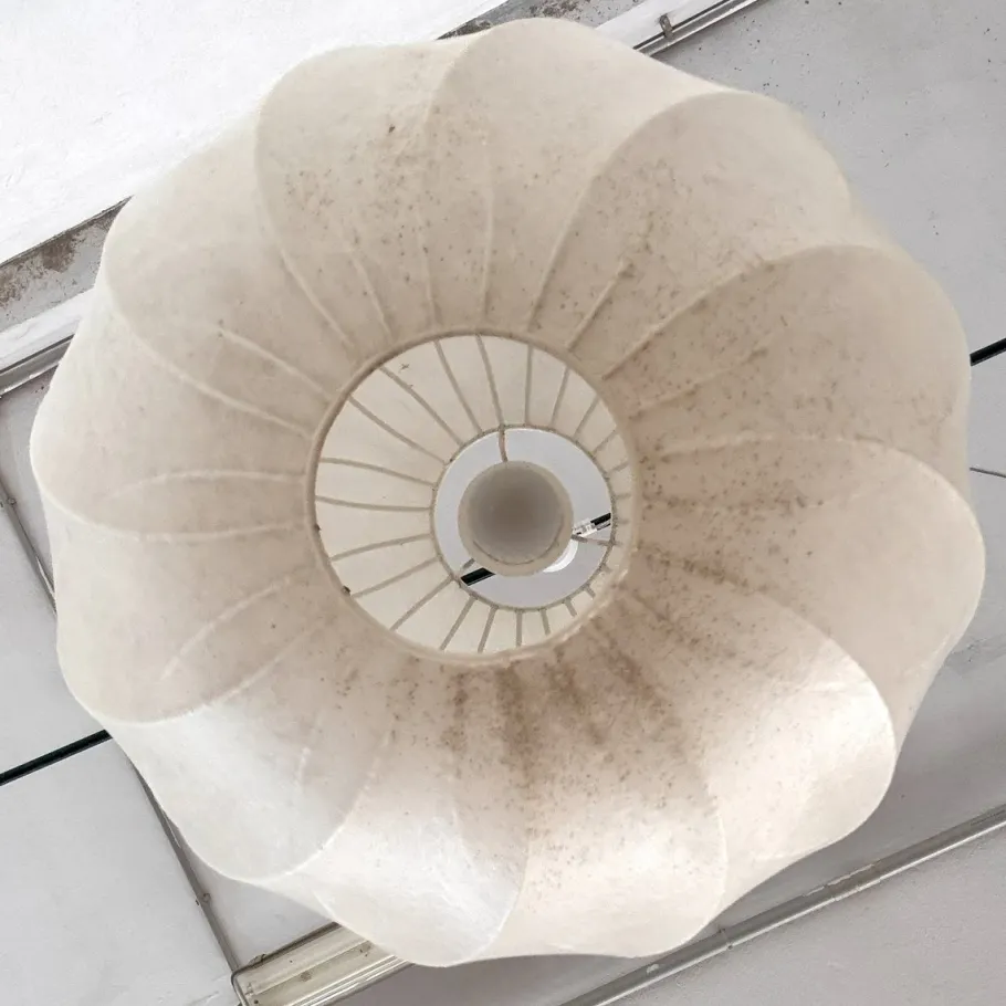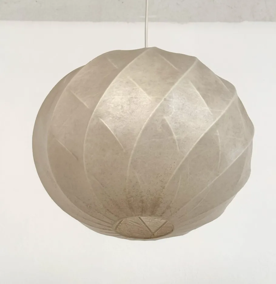 The cocoon is in good shape and has no holes, but normal small vintage spots at the top and bottom, which gives the lamp its beautiful vintage effect.