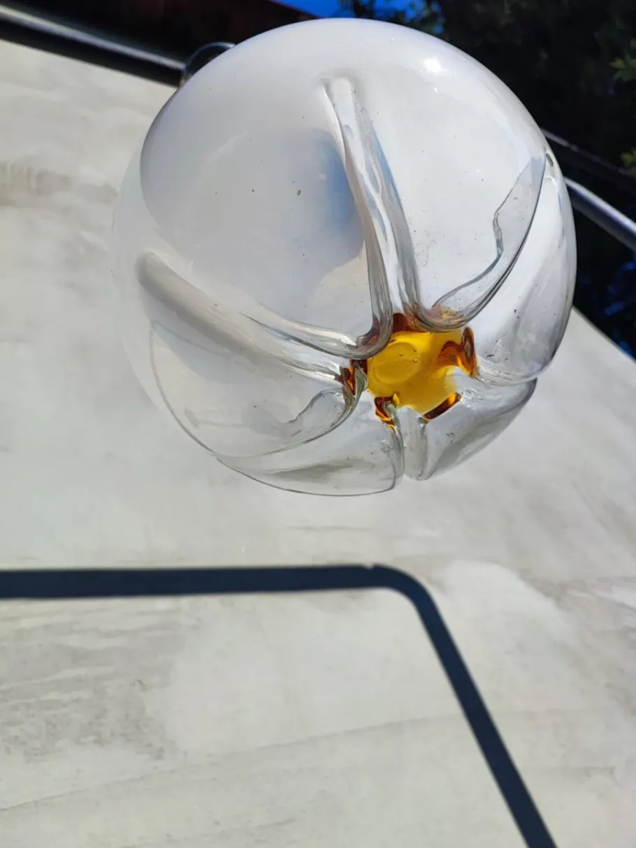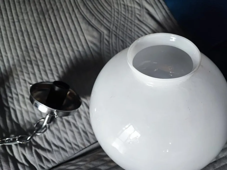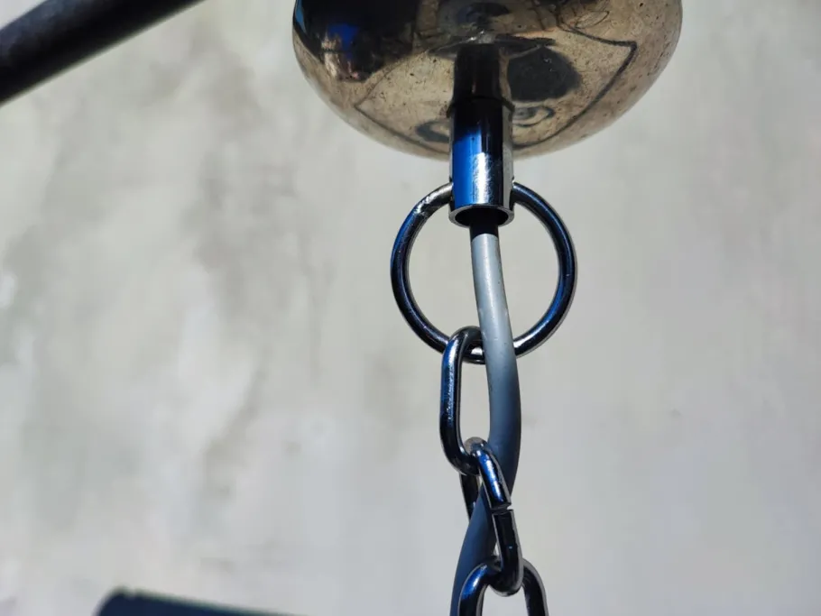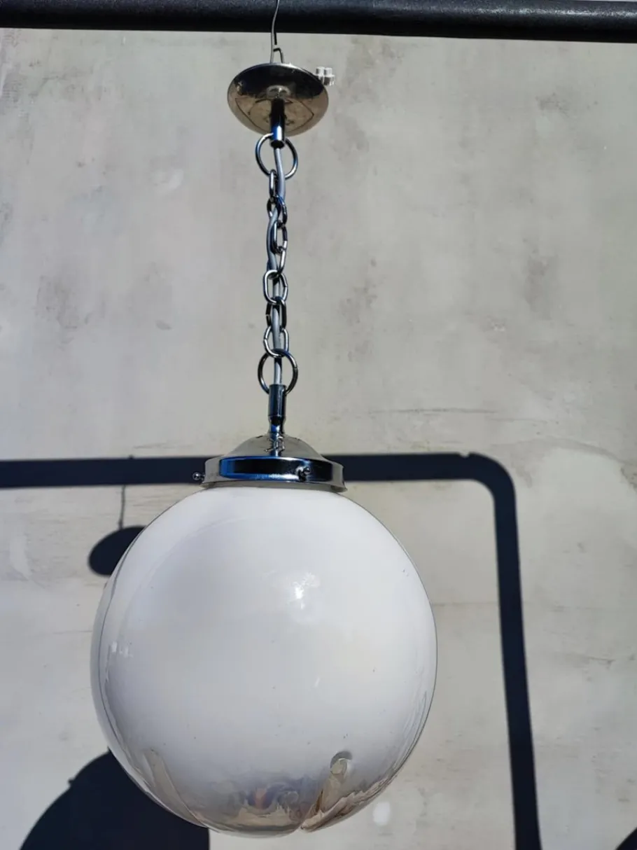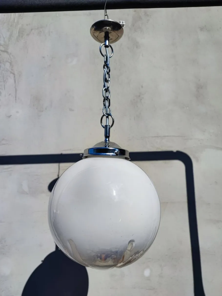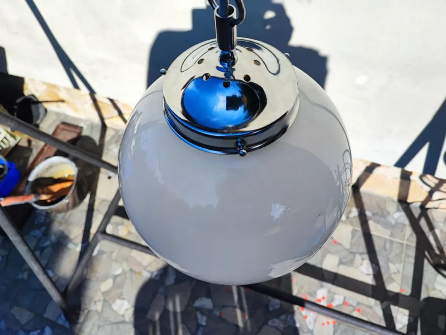 | Restoration and Damage Details | Lamp, chandelier, nickel-plated brass, Murano, 1970s, dimensions: height 56 cm, diameter 25 cm. |