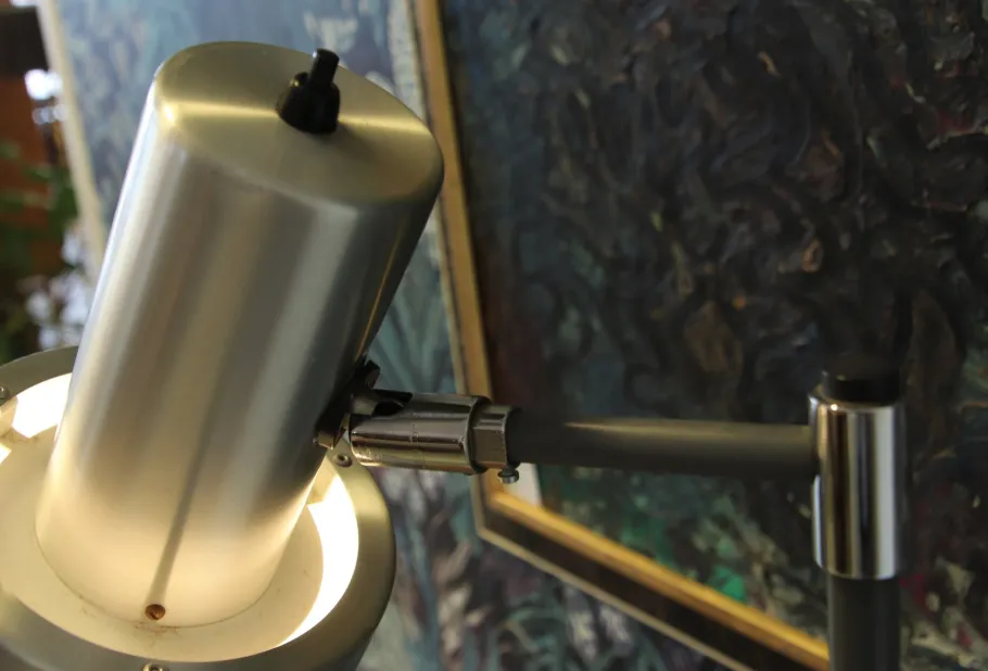 In very fine condition with freshly grounded electricity made by electricians! There are some superficial discolorations on the bar and scratches on the foot, see pictures, but absolutely nothing that disturbs the whole.