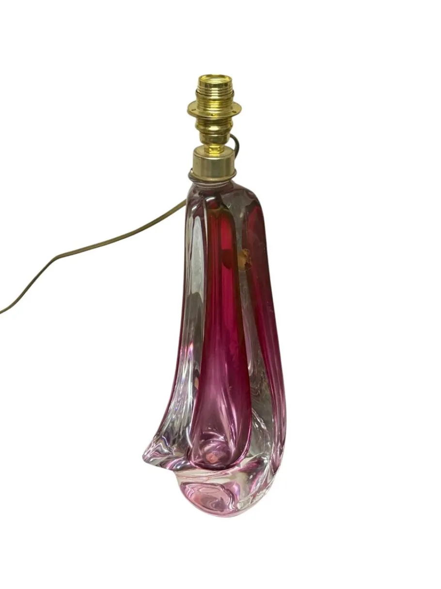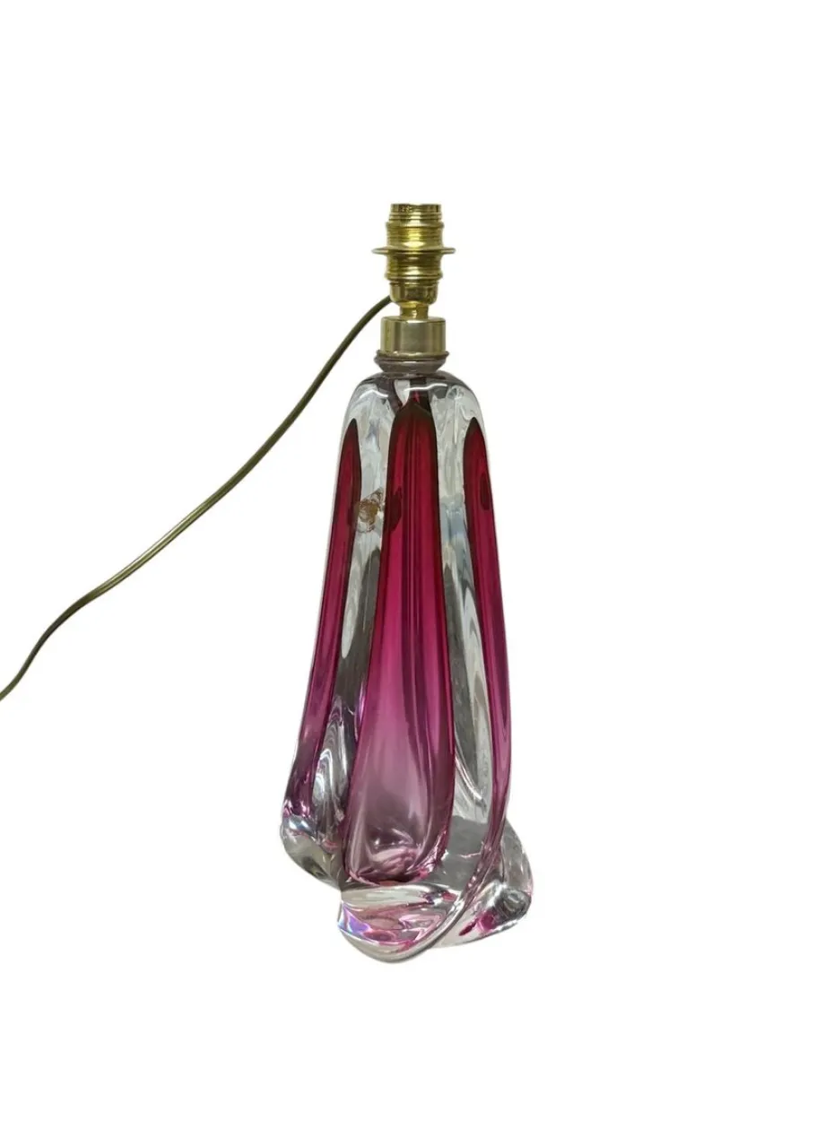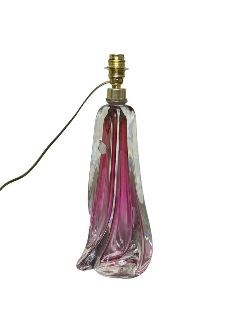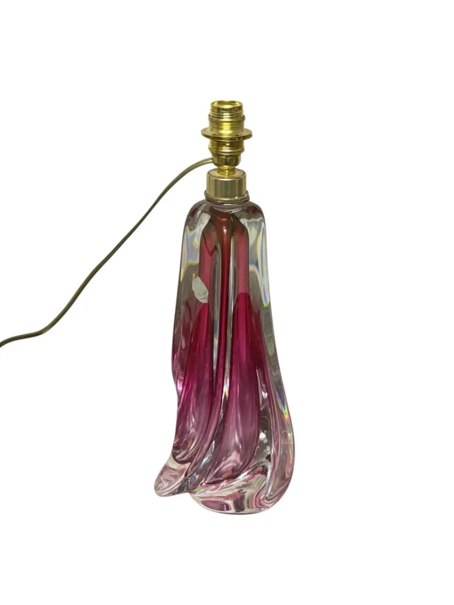 Belgian Val Saint Lambert lamp Circa 1940, made of pink leaded glass.