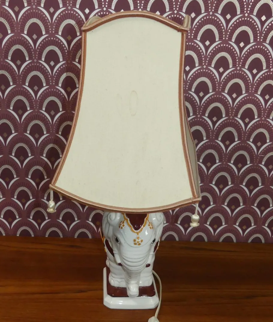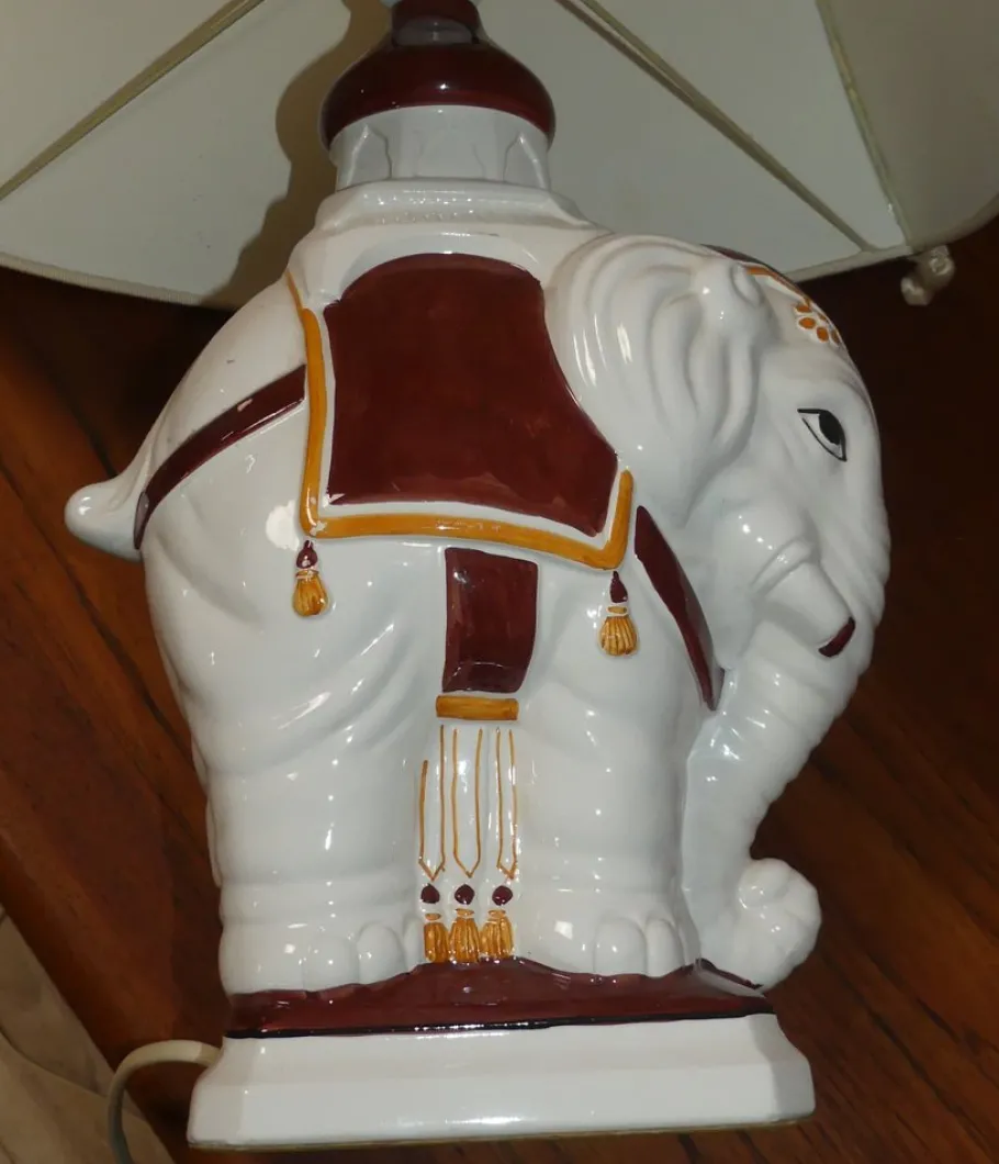 Here is a approximately 30cm high elephant with red -brown gear