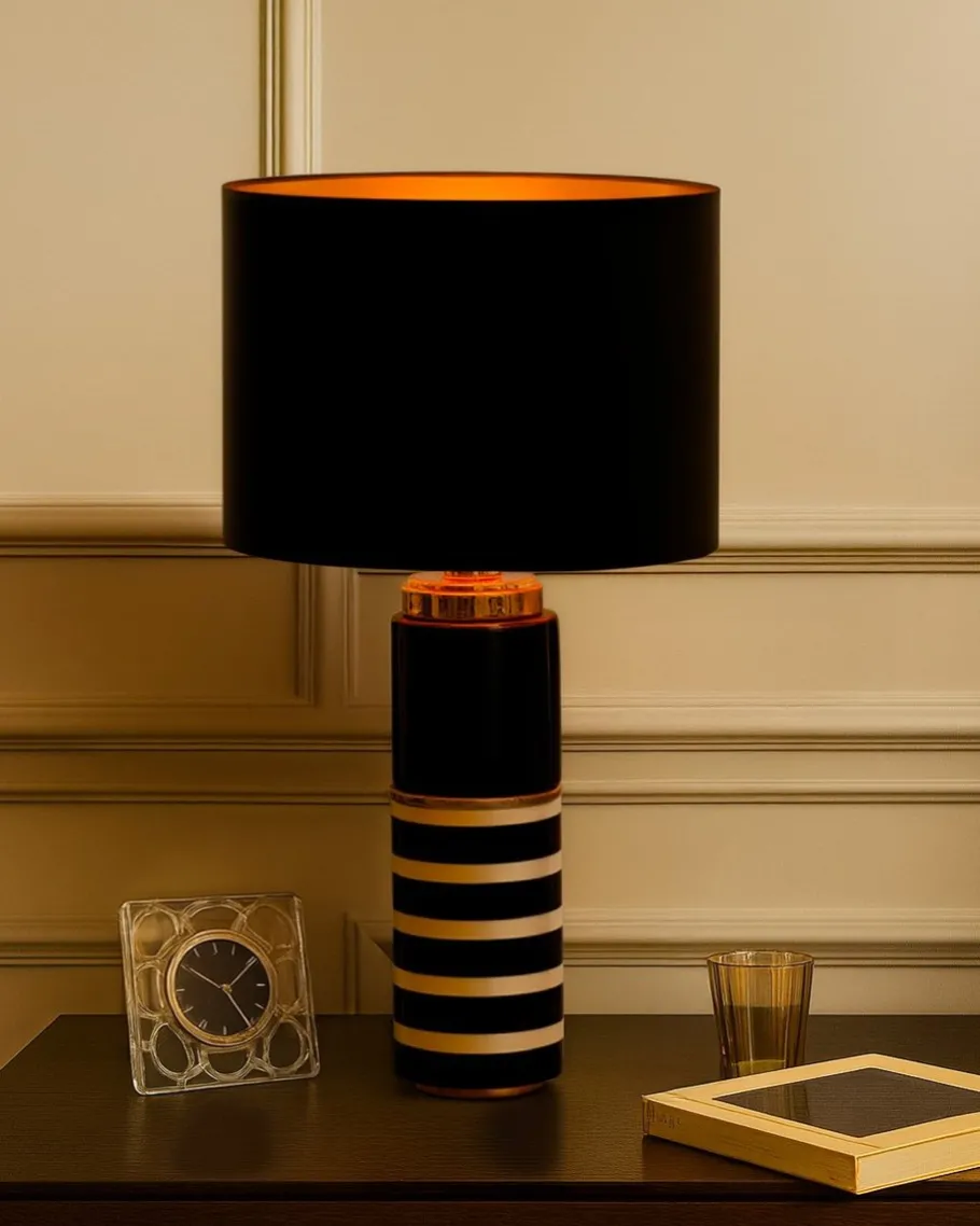 This lamp is inspired by the strength and elegance of its five black and white lines, each symbolizing a unique melody. These intense lines punctuate the light and structure the design with understated, modern flair. A subtle touch of rose gold illuminates the whole, adding a touch of uniqueness, like the precious detail of a piece of jewelry.