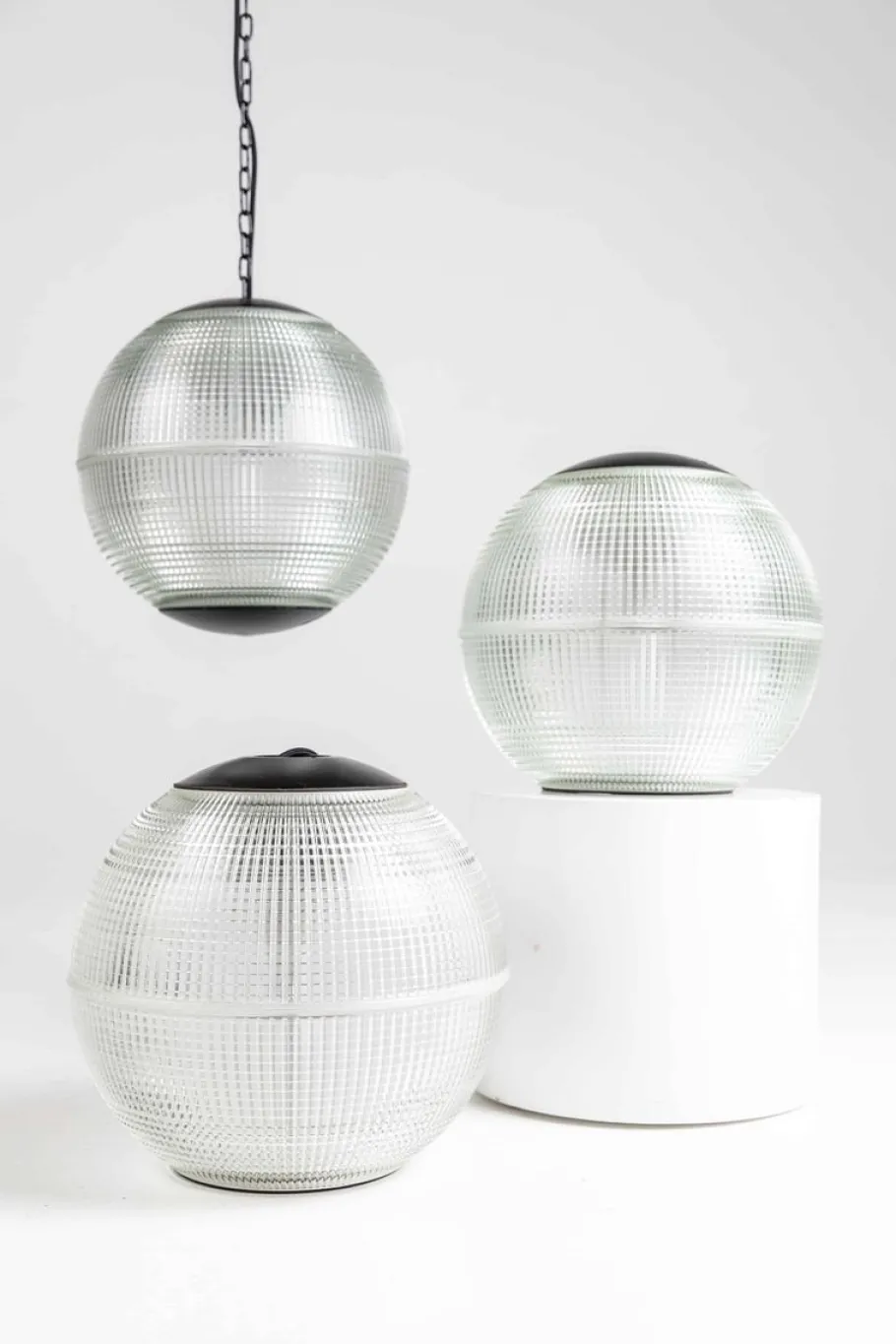 This version has the 40cm diameter, these lights have remained in amazing condition, with only some age related chips to the prismatic glass reflectors as to be expected – can only imagine how many young French kids have thrown stones at these lights over the years! Price is per lamp.