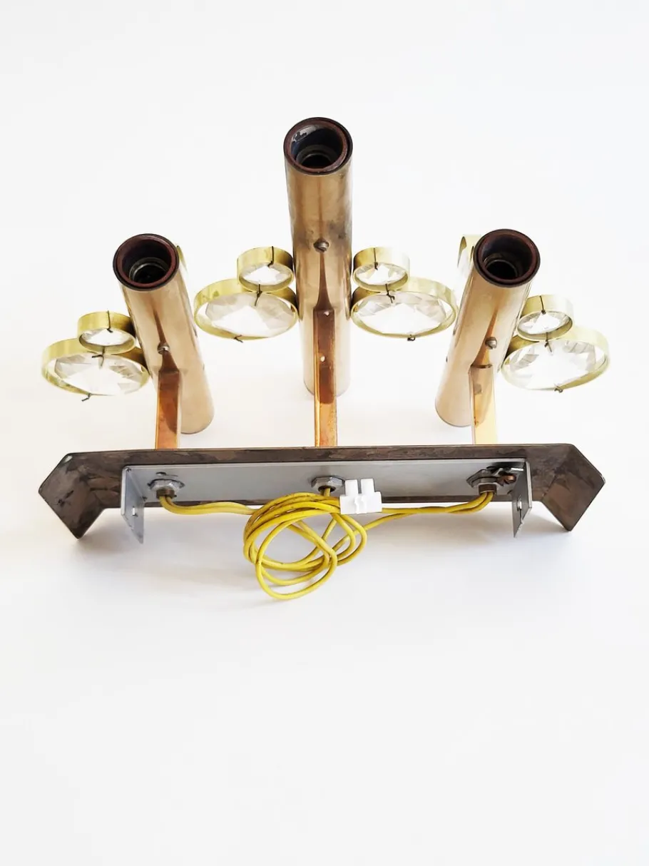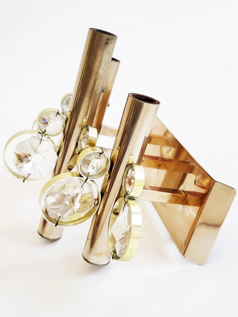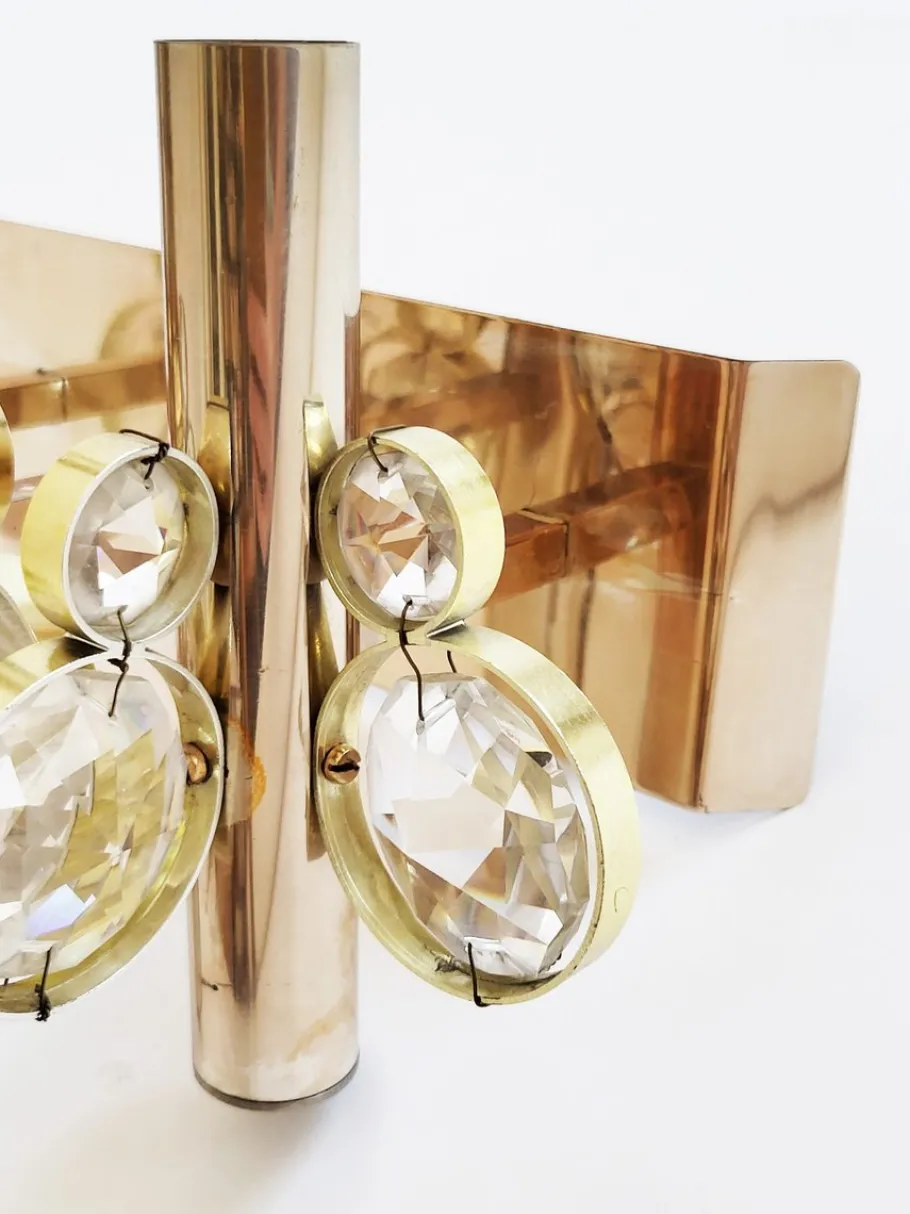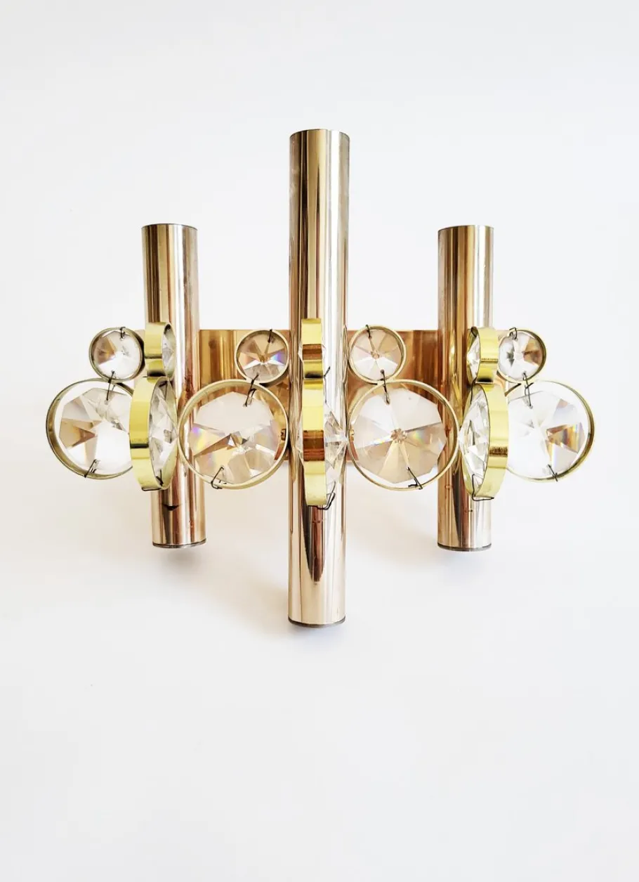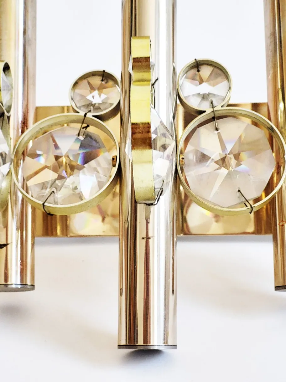 (designed by Gaetano Sciolari) is made of gold-plated brass, decorated with faceted crystals,
