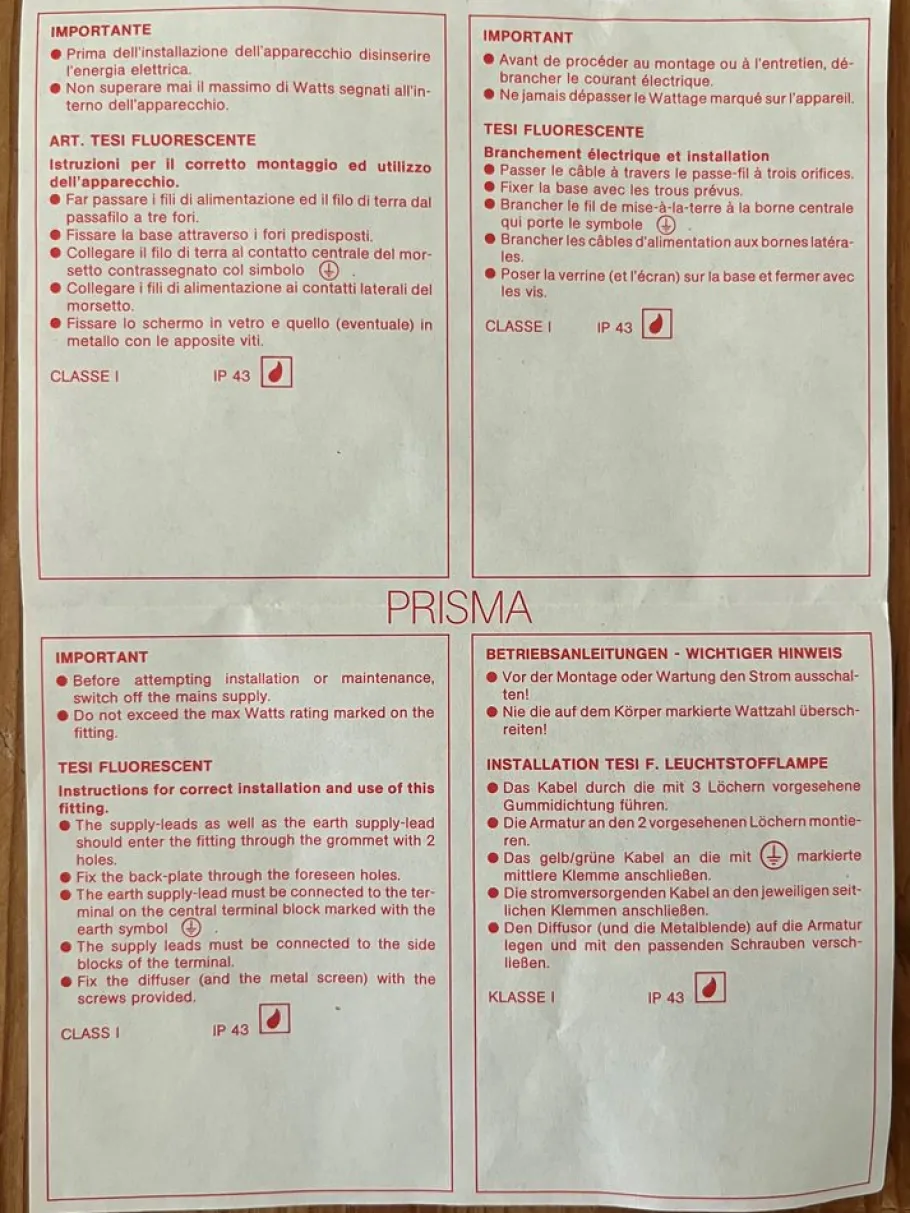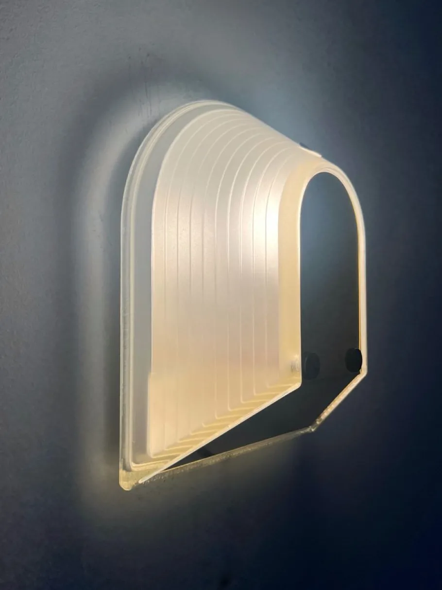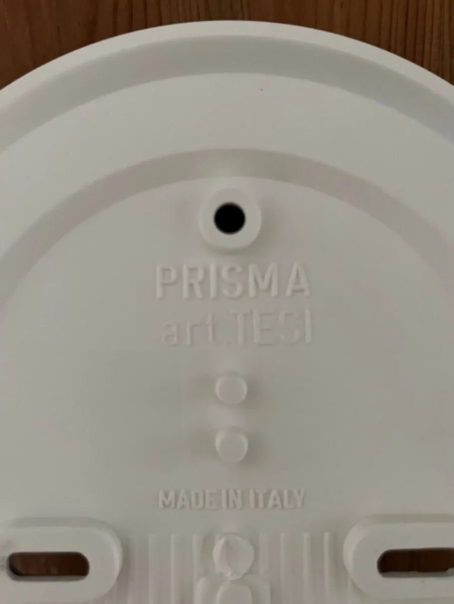 The name of the manufacturer “Prisma” and the model “Tesi” are stamped on the structure of each Wall Sconce.