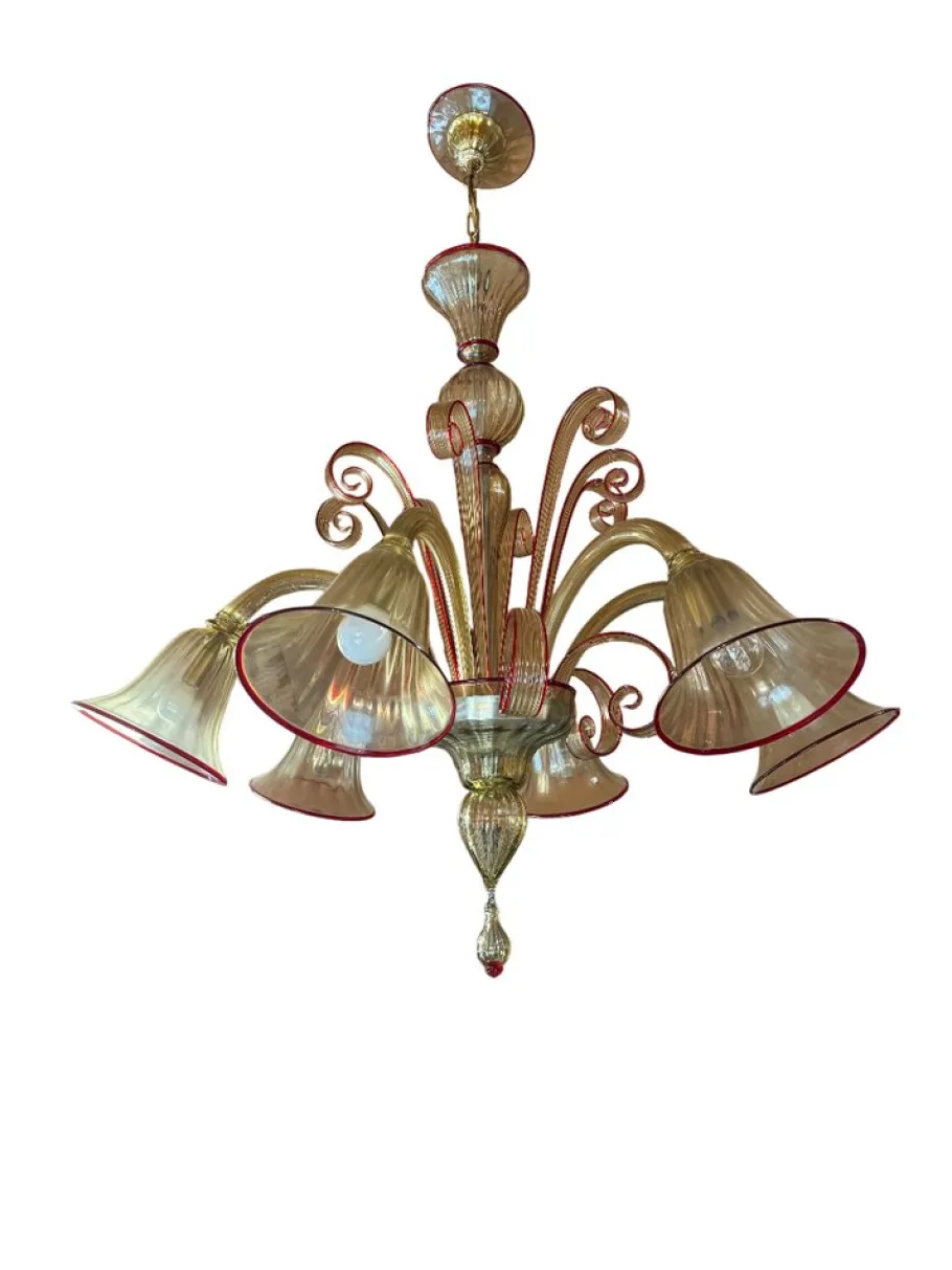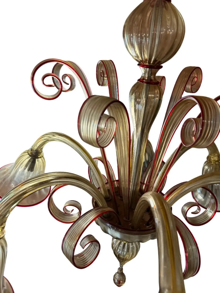 The chandelier is composed of 6 lights, 8 high curls and 6 low ones.