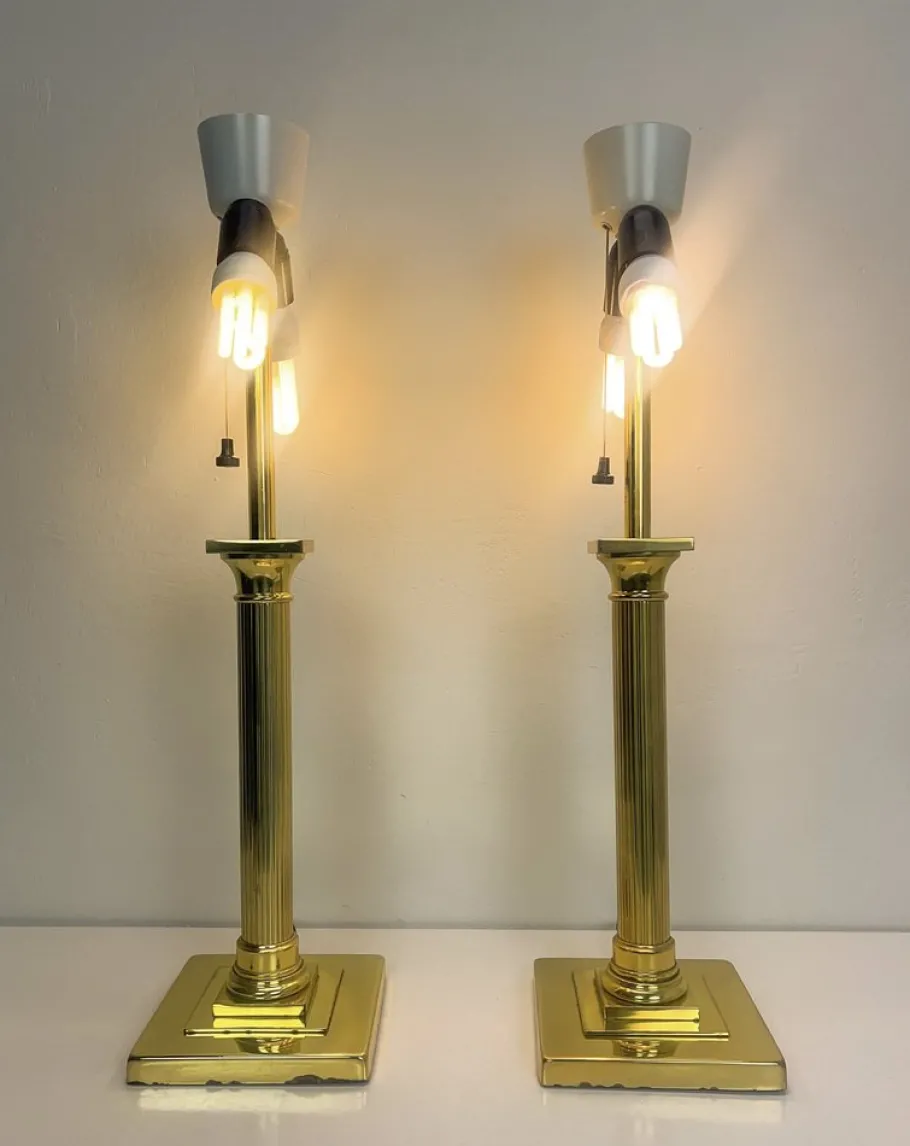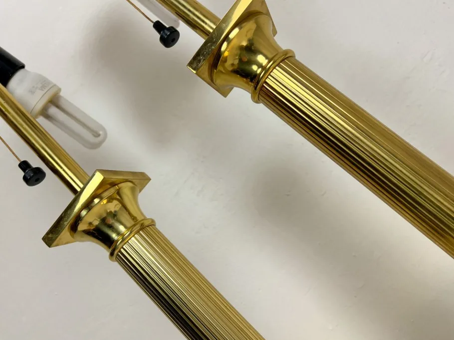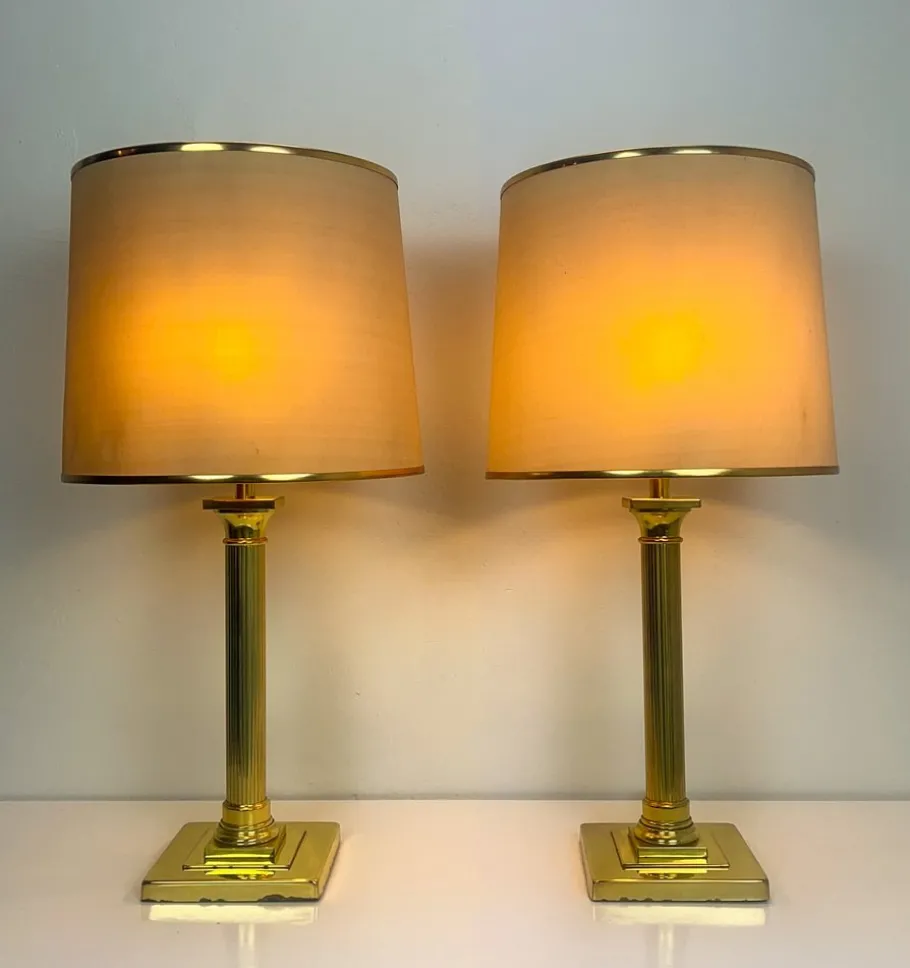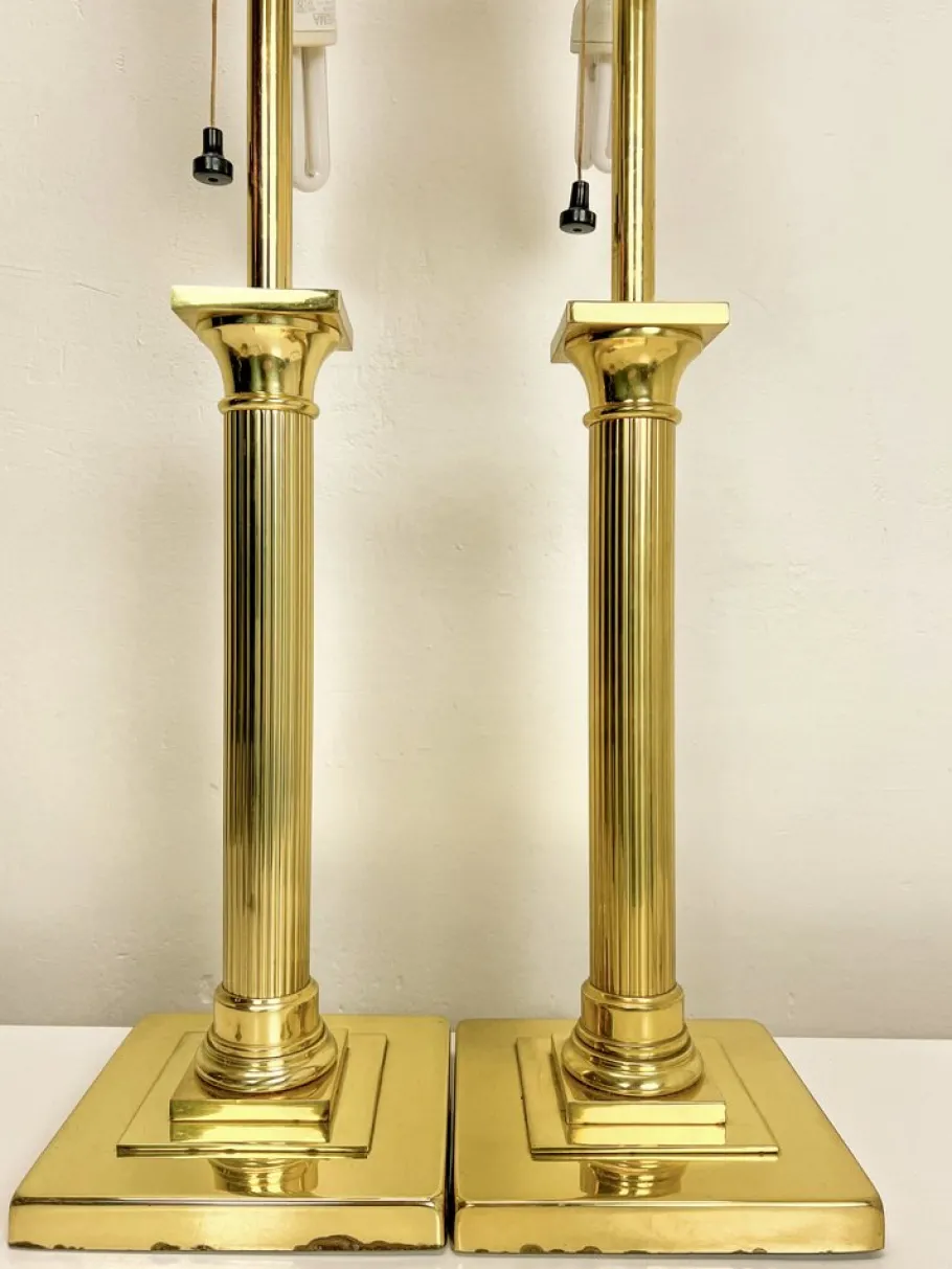 The heavy brass column is beautifully shiny and has a deep gold-coloured patina.