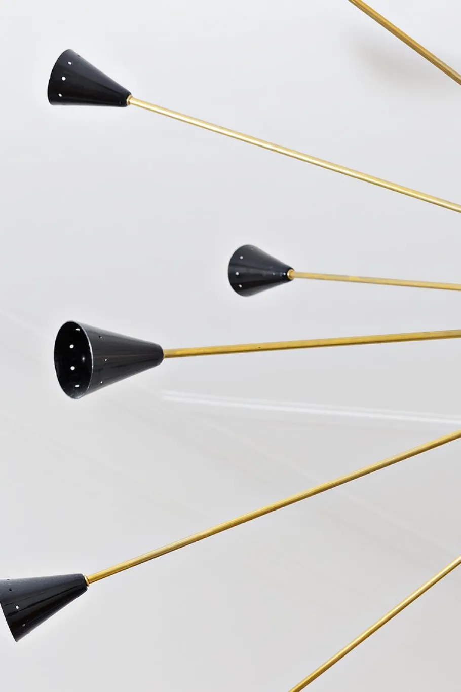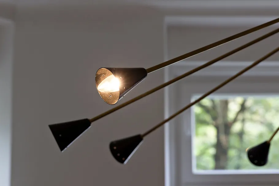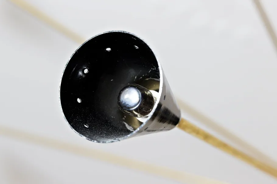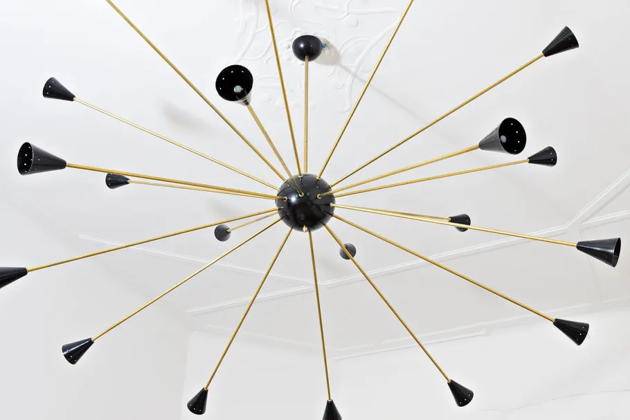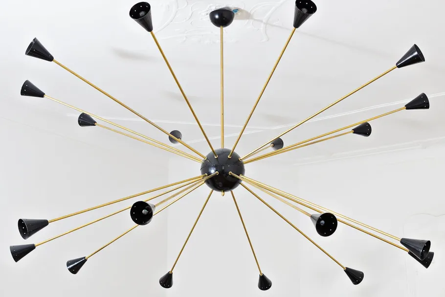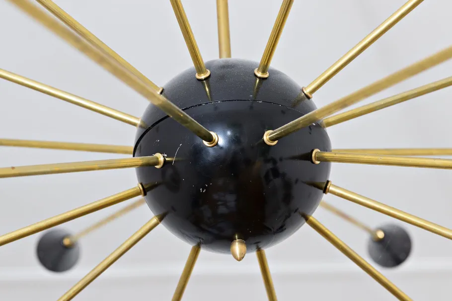 Very big Chandelier, brass, black lacquered metal, 20 bulbs