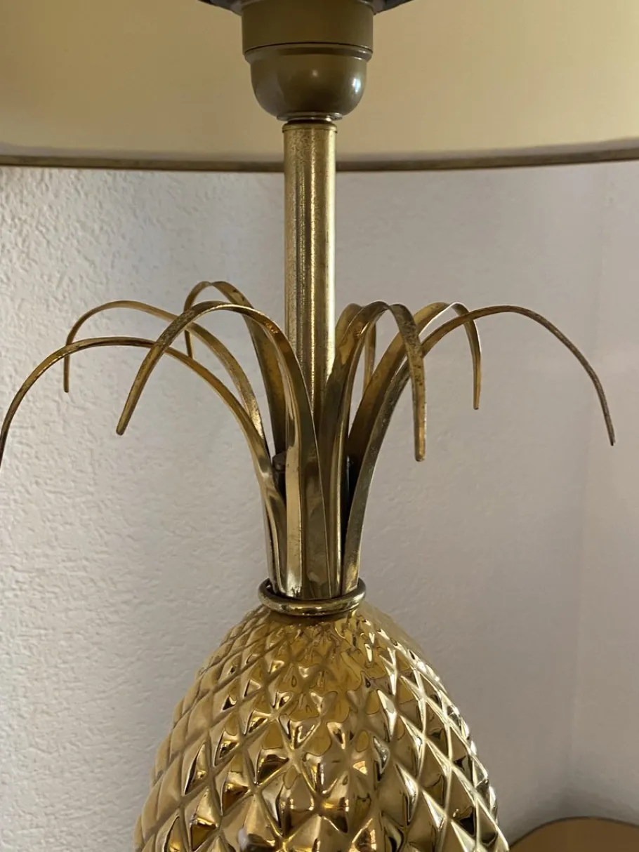 | Restoration and Damage Details | Light wear consistent with age and use, Some loss of gilding on the pineapple, The metal may be pitted in places, The lampshade has signs of wear |