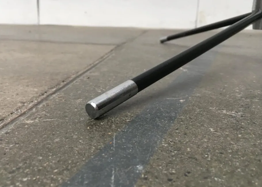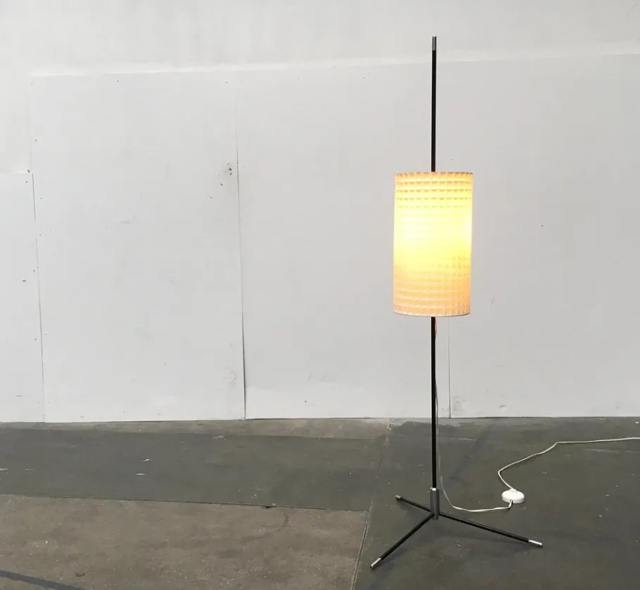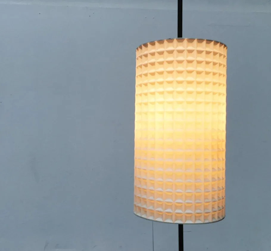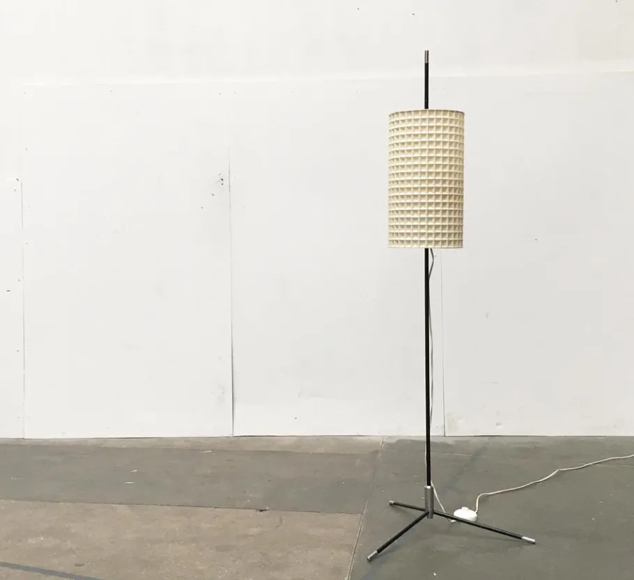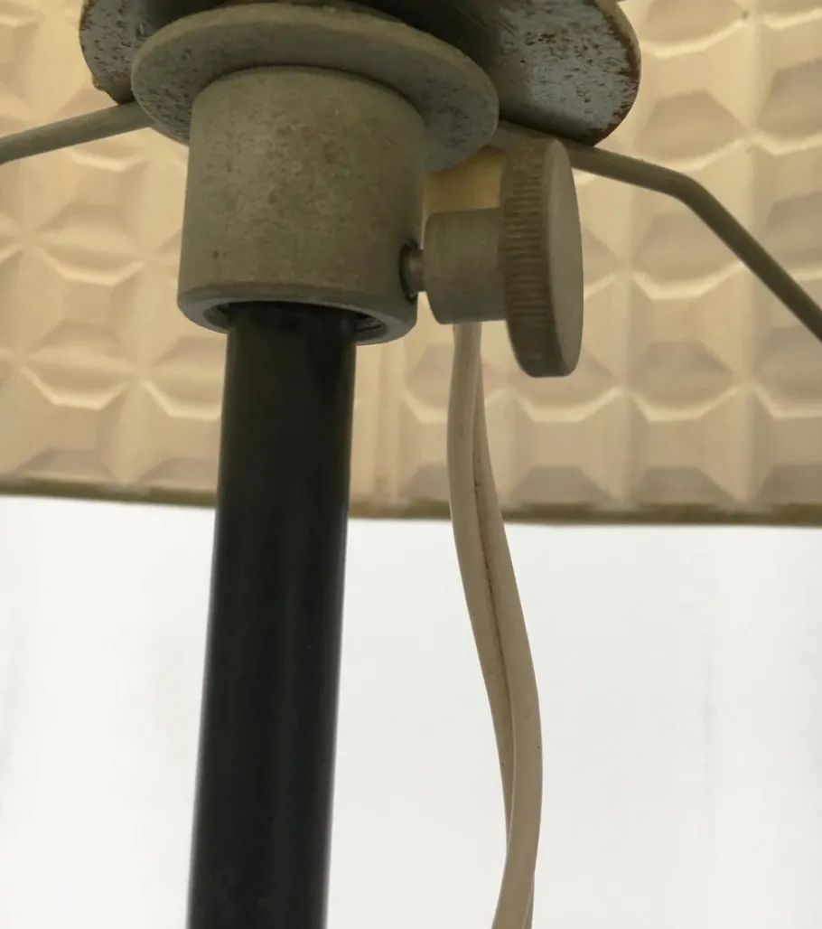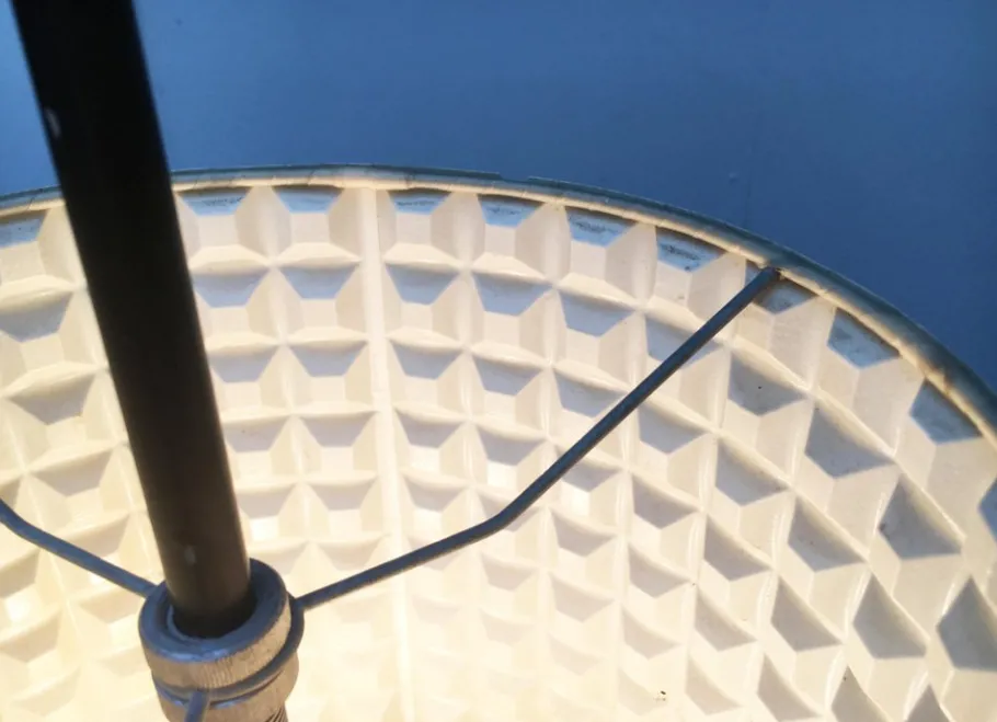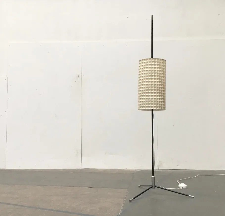 The cylindrical umbrella is made of plastic and wears a deep, three -dimensional pattern. It can be adjusted on the rod of the foot in height and fixed with a screw. Also striking the finely executed original foot.