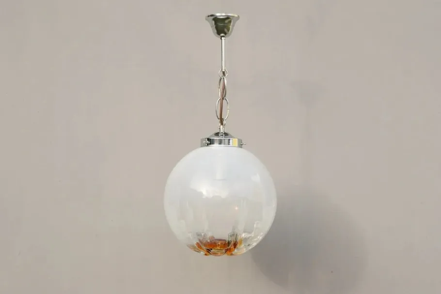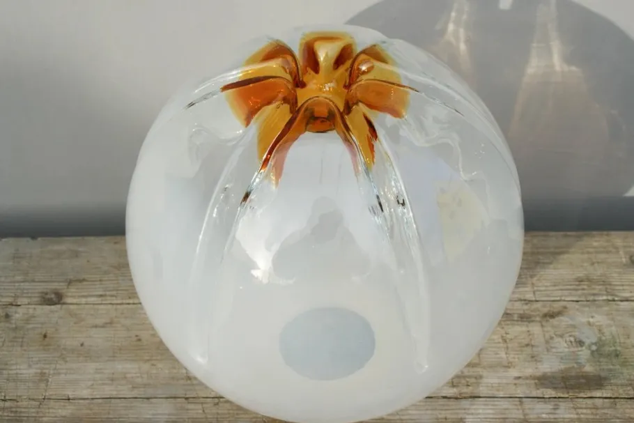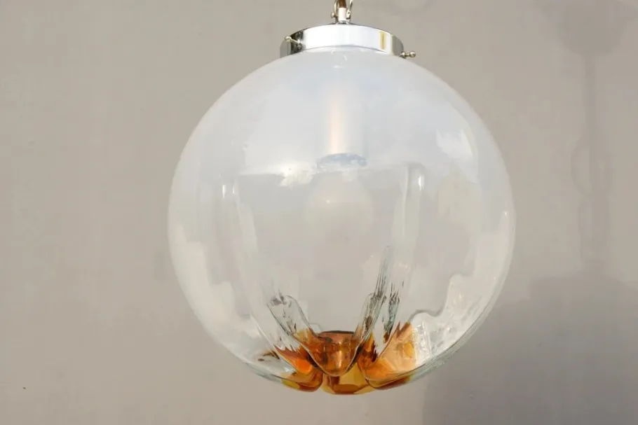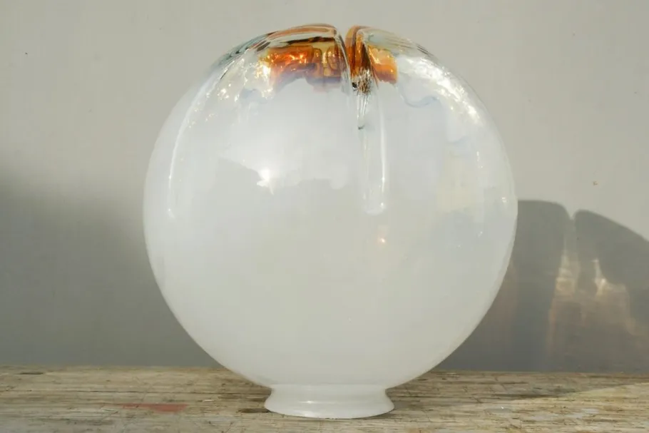White tinted glass globe with amber underside.