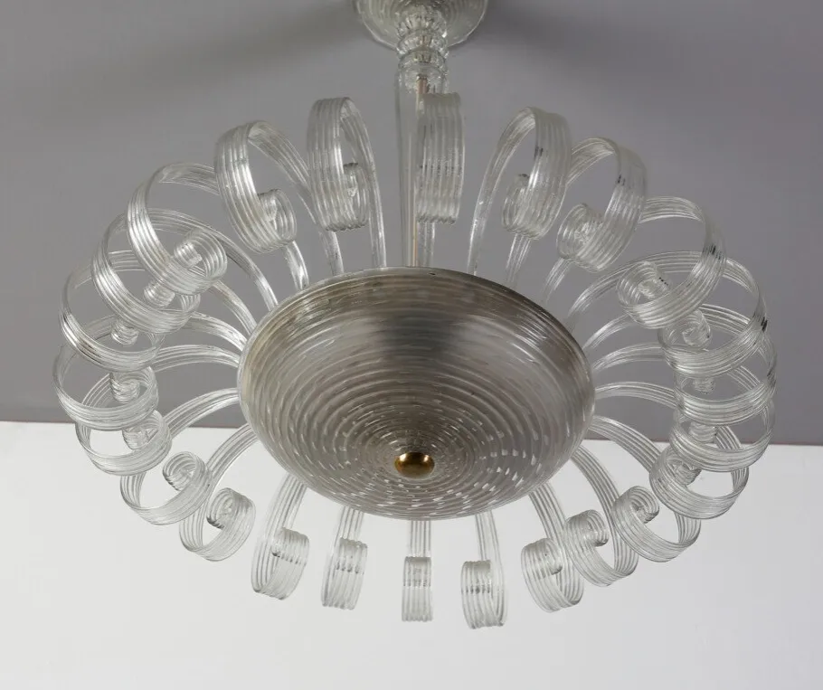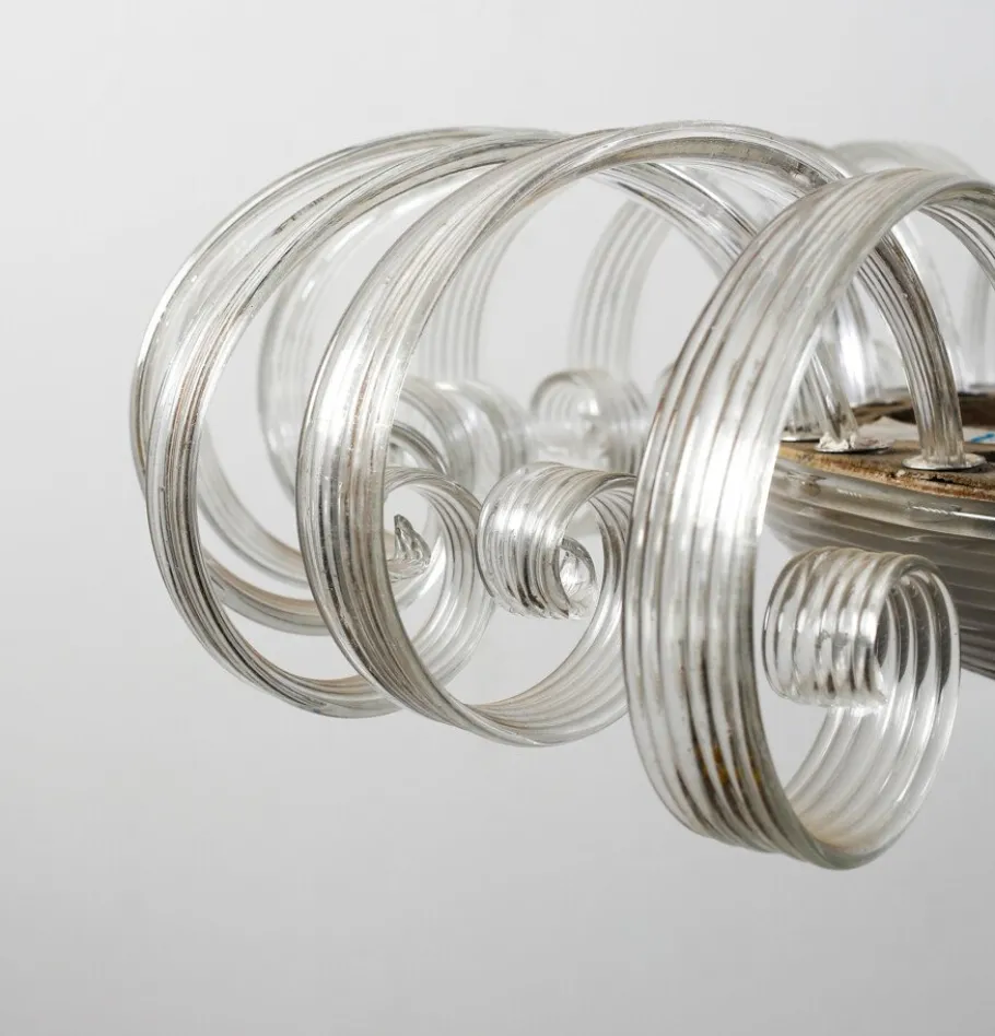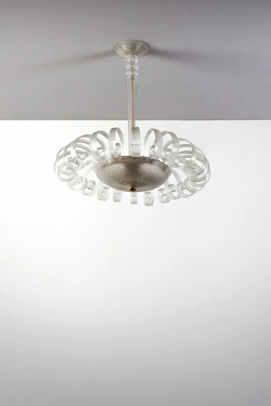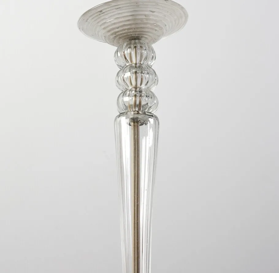 Technique: Clear, ribbed glass with bubble-embellished bowl, brass and wood frame.