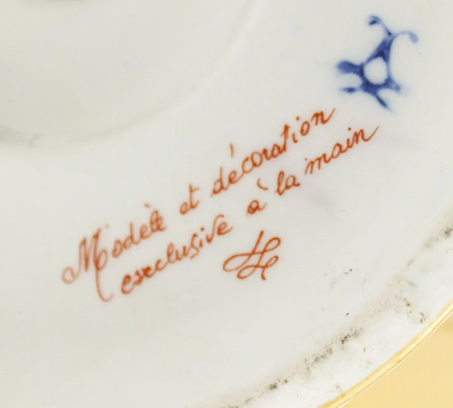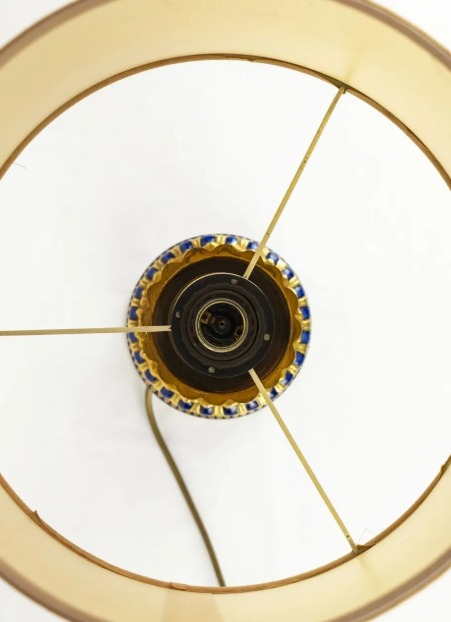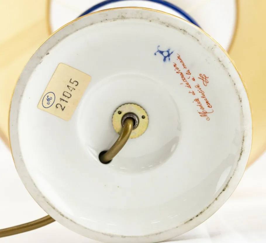 Base in hand-painted Sevres porcelain, with blue and gold floral decorations