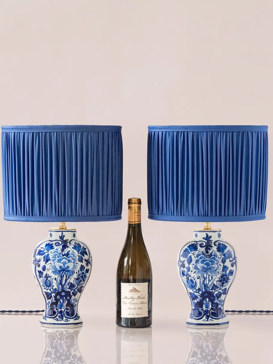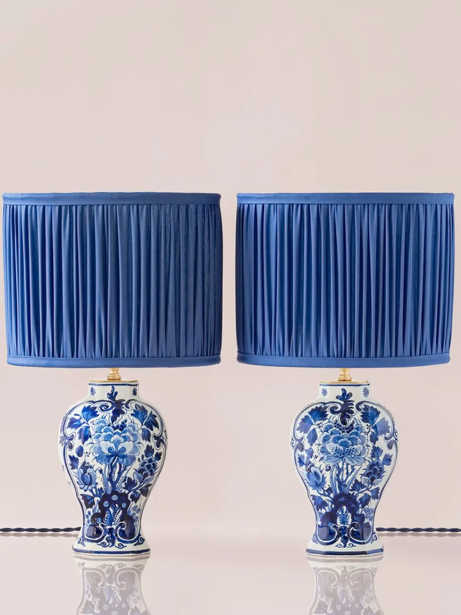 The vase bases feature traditional baluster shapes, scrolling C-curve rocaille cartouches, and eight sides, all painted in classic Delft blue with intricate floral motifs. This design reflects the Louis XV style, which De Porceleyne Fles, one of the oldest and most prestigious Dutch Delftware manufacturers, adopted in the late 19th century to meet the growing demand for ornamental pieces.
