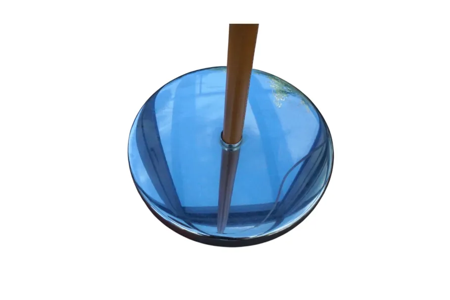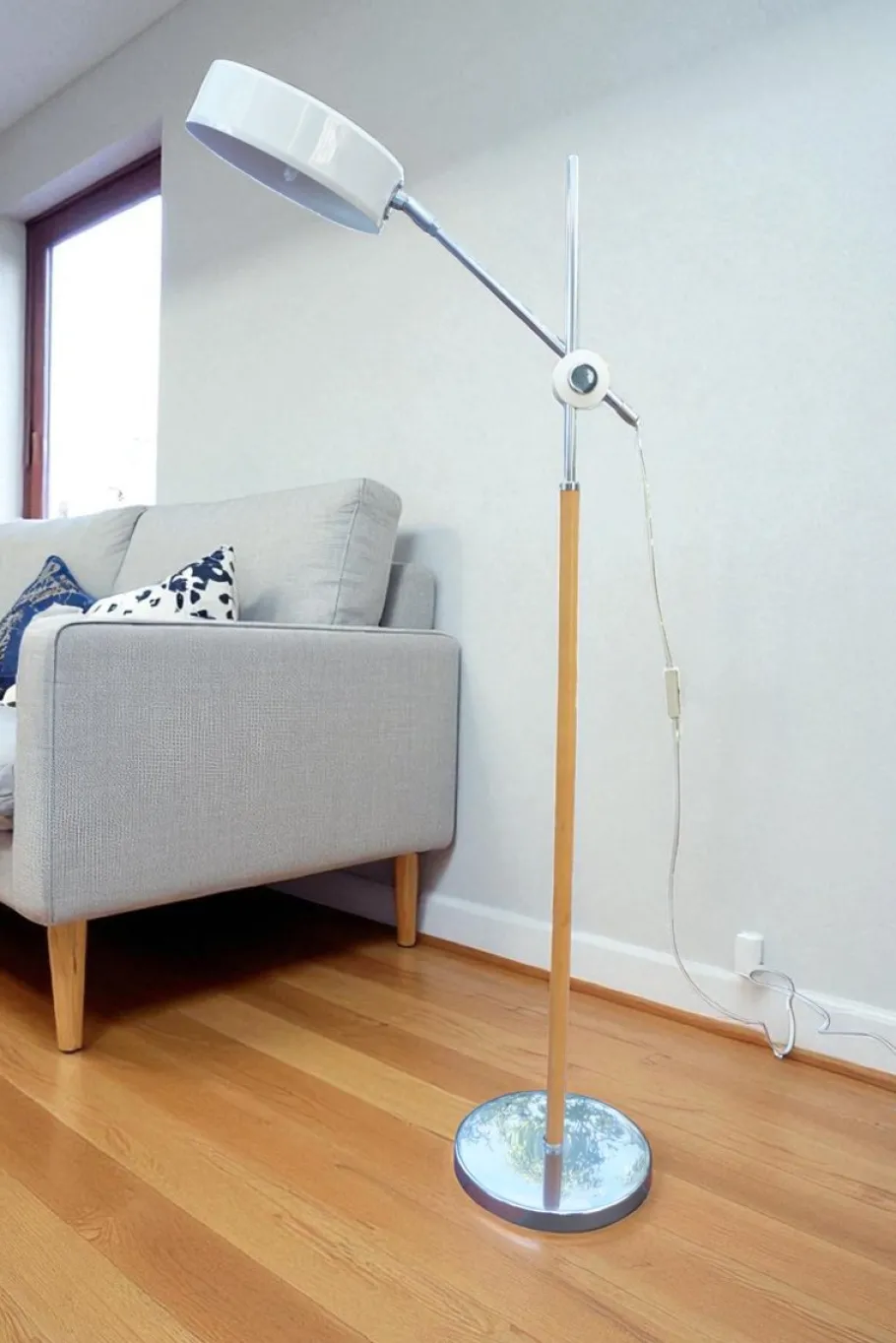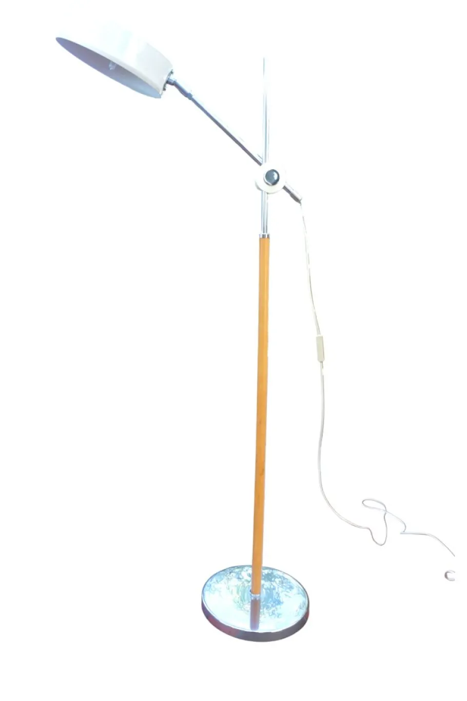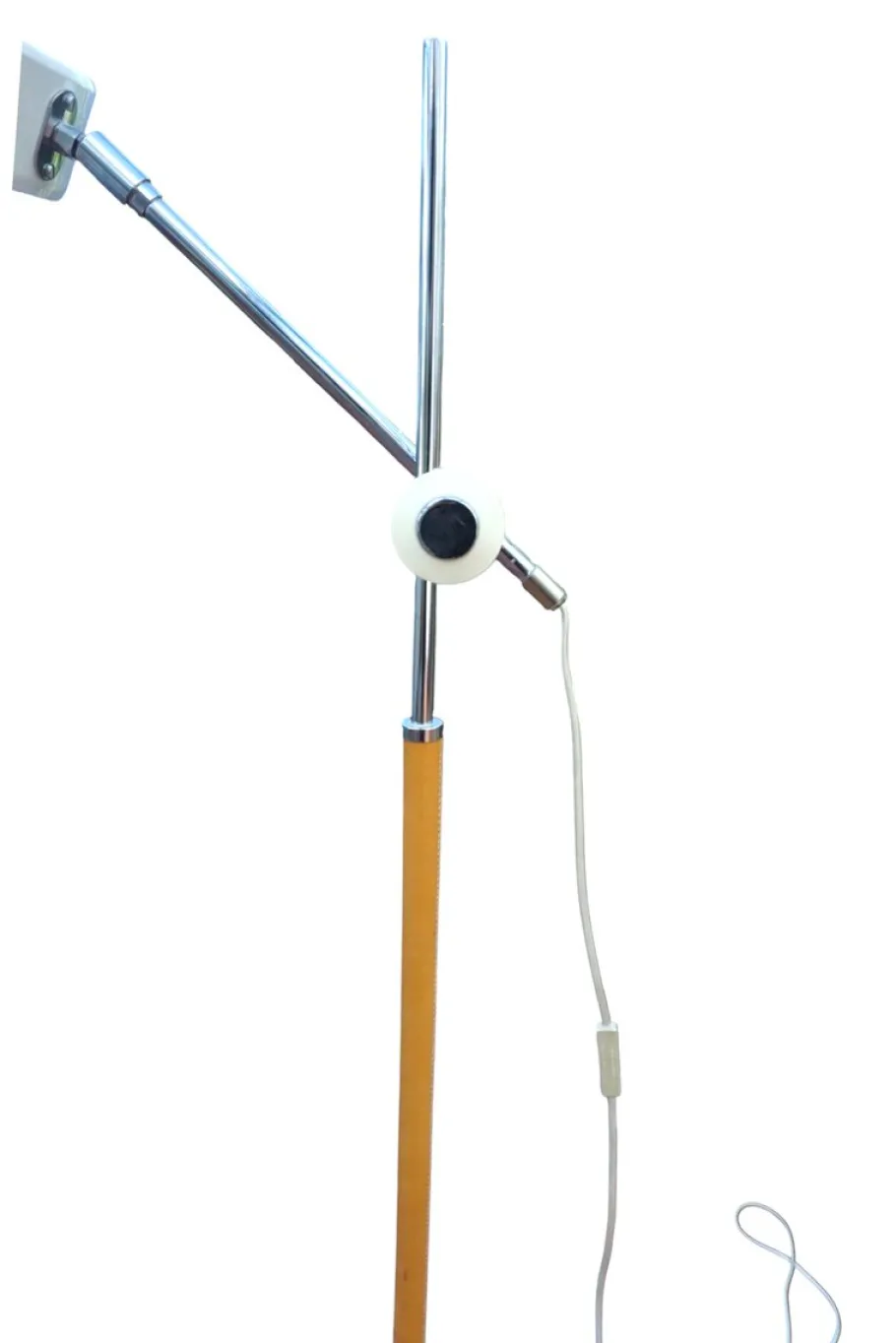 This lamp was originally designed by Anders Pehrson in 1964 and commissioned for the Olympic Village of the 1972 Munich Games, underscoring its historical relevance and demand. The Model 591 is typically designed with high-quality materials and a classic minimalist design language: chrome-plated metal parts meet leather or wood applications and a clear white lampshade. The excellent “Made in Sweden” craftsmanship and the branding on the lampshade are true hallmarks of quality and valuable proof of its originality.