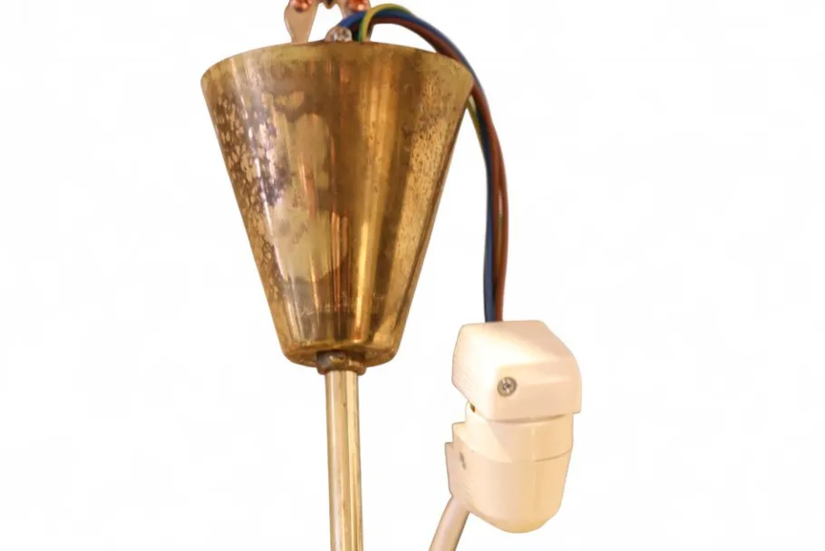 In fine condition with freshly grounded electricity carried out by an electrician. The brass is not polished and there is a slight patina on the leaves, which is inevitable after about 70-75 years of use.