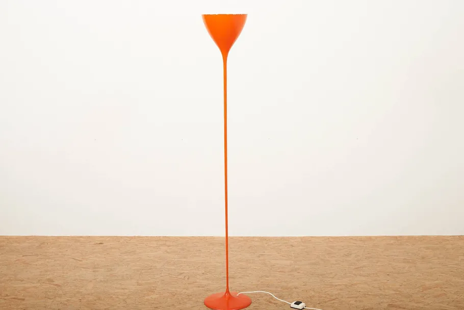 Metal Painted Orange, Tulip-Shaped Shade, E27 Socket, Foot Switch on the Cable Bag Turgi, 1962, 1960s