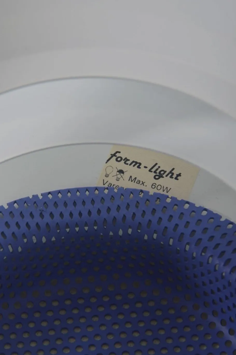 The lamp is based on an accumulation of screens of different diameters around the lamp holder, creating a very pleasant diffused light. The blue color provides a playful accent.