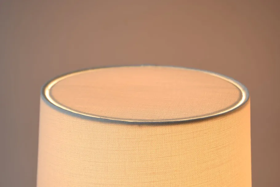 Included is a set of new lampshades designed and made in Denmark. They are made of woven fabric with some texture and they are natural white. They have top covers so they will spread a cosy light downwards.