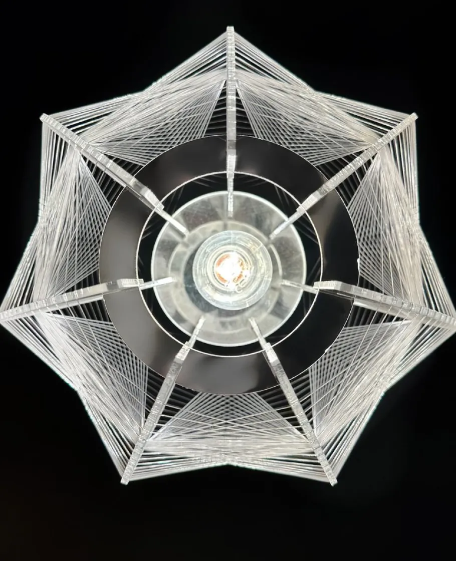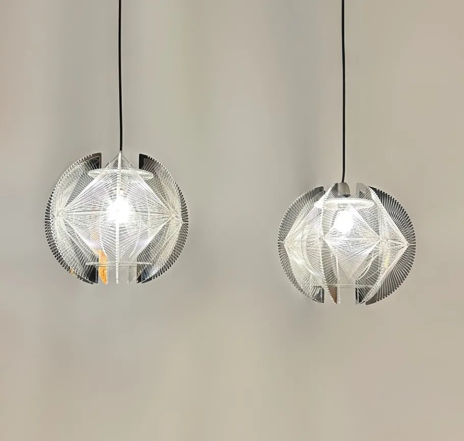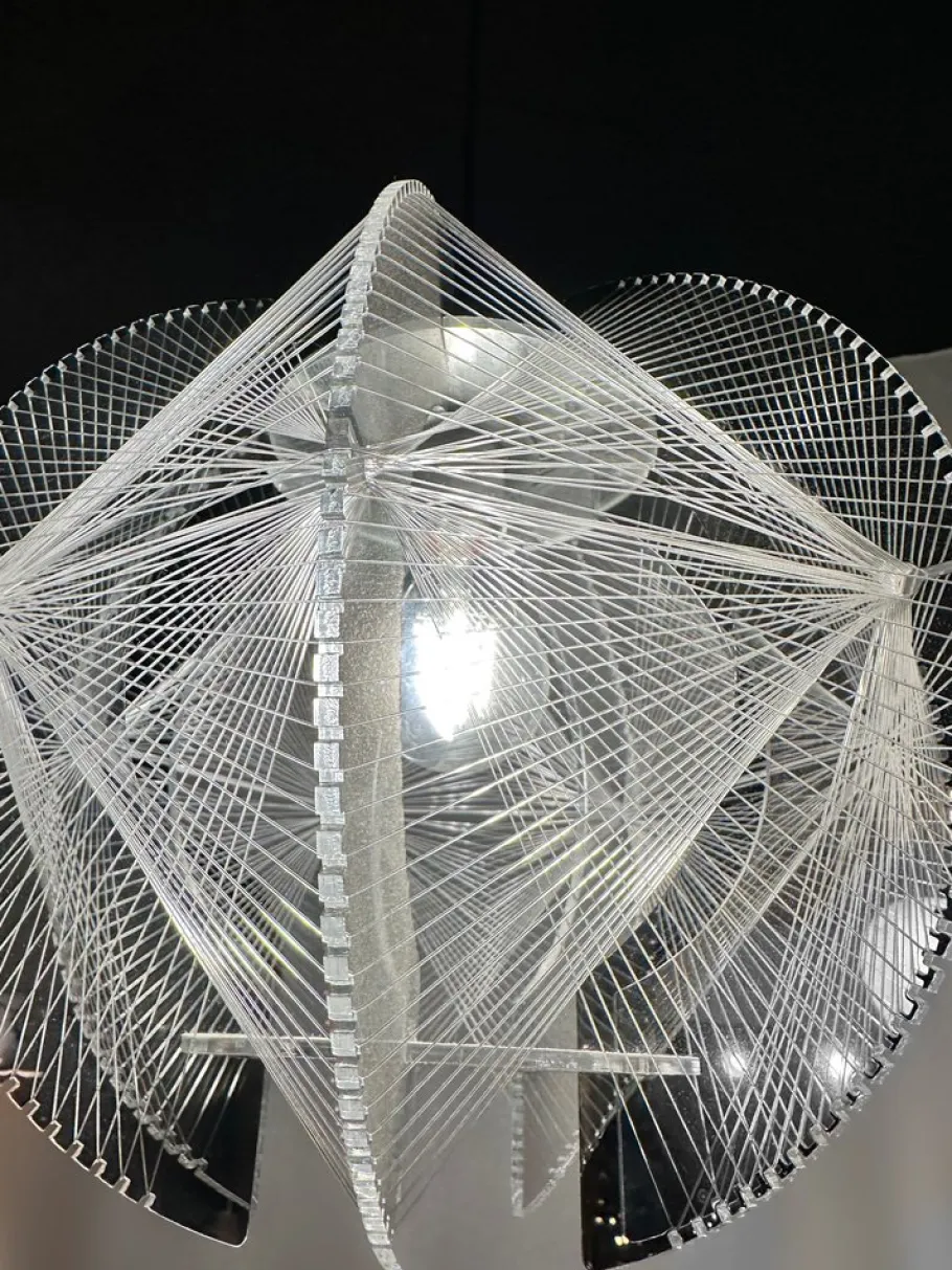 Paul secon is renown for this collection of acrylic & nylon with Sompex designer chandelier, pendants, Floor & table lamps.
