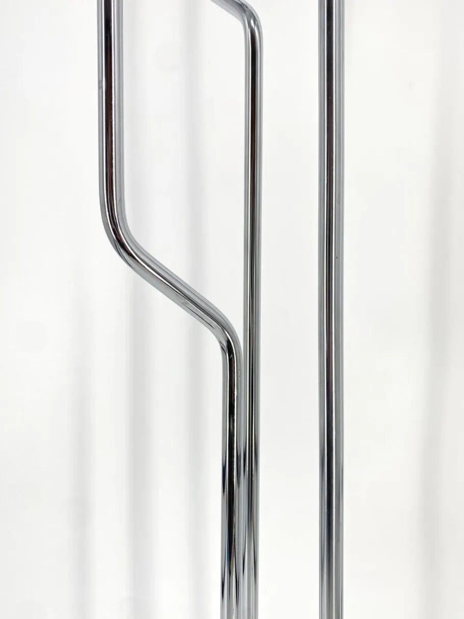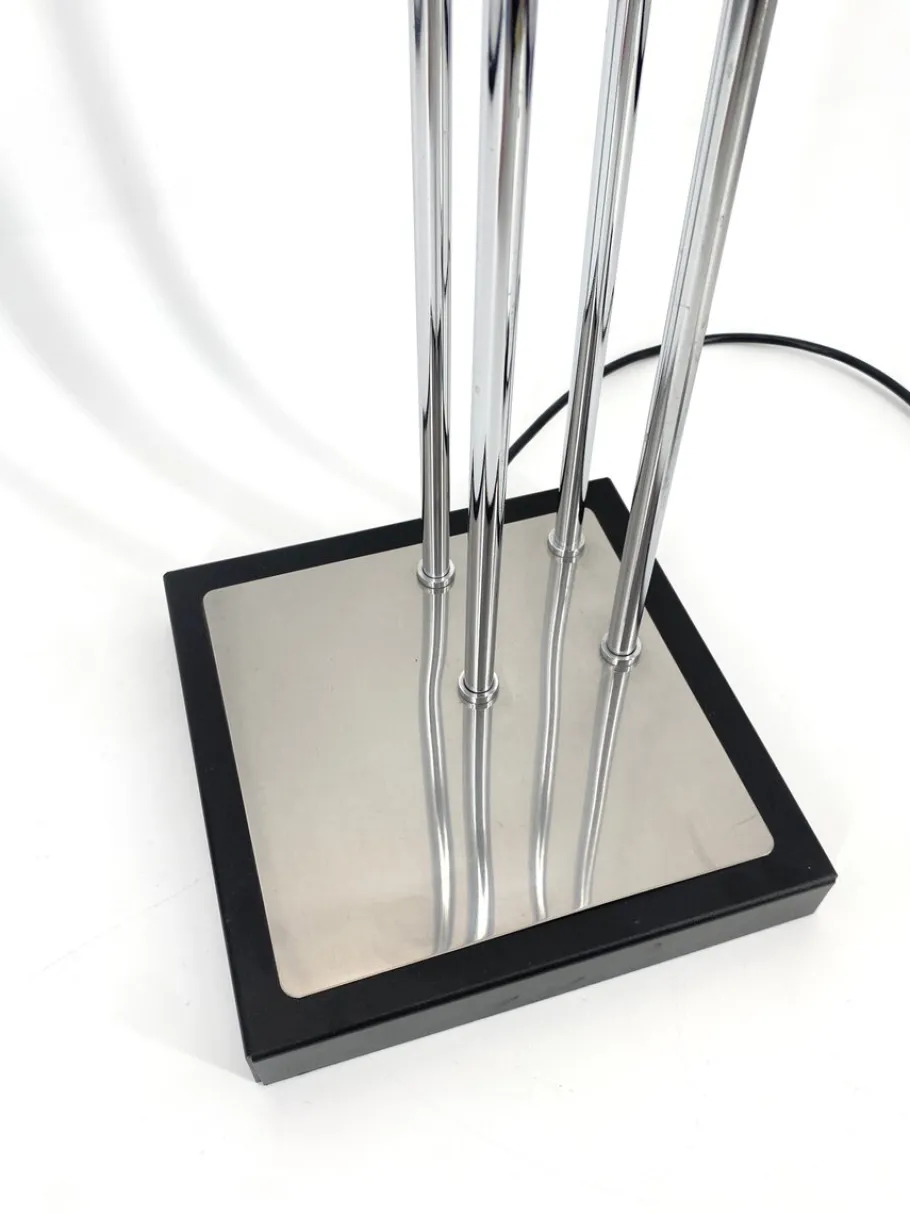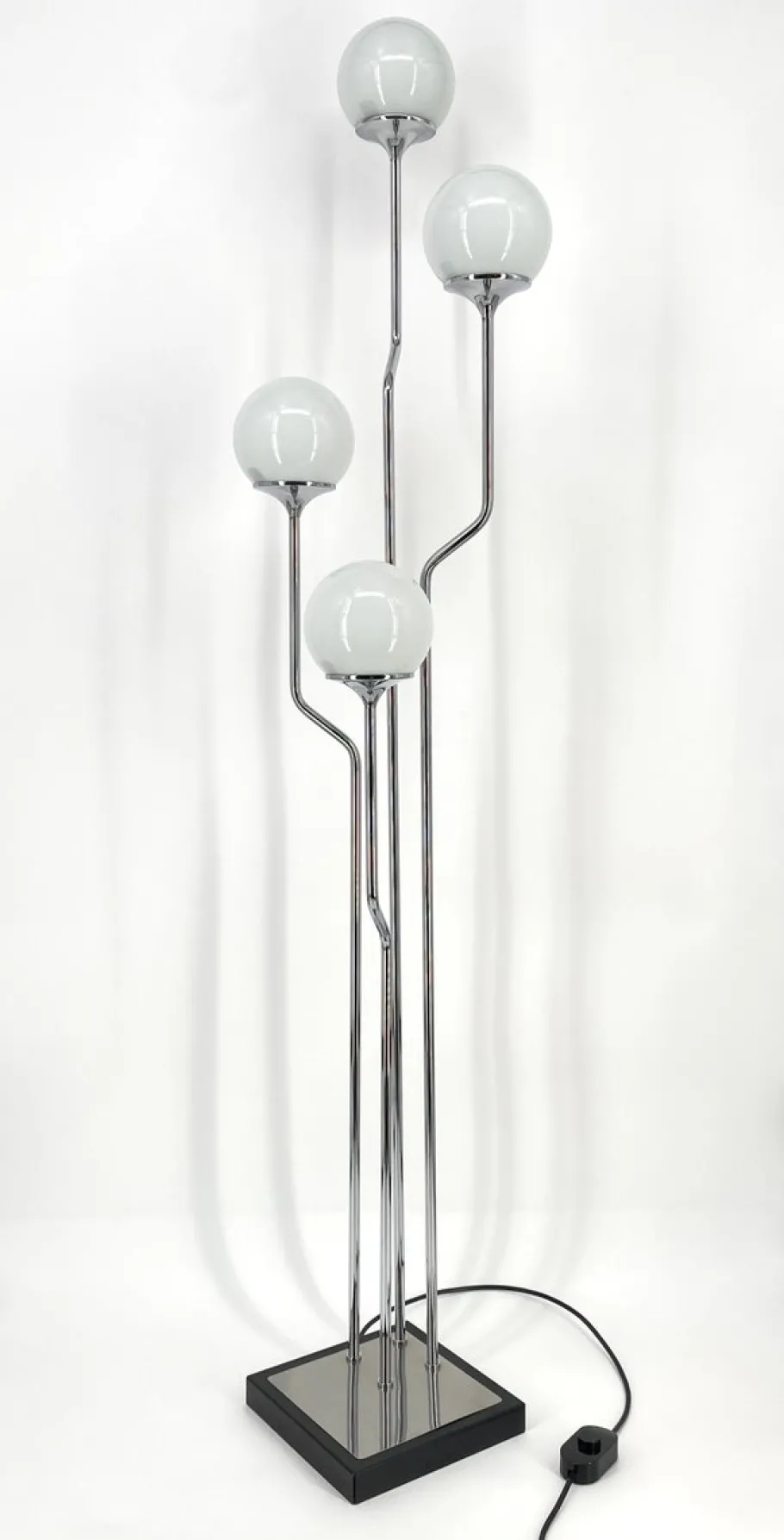 * Four opal glass balls on narrow, graphically curved chrome rods