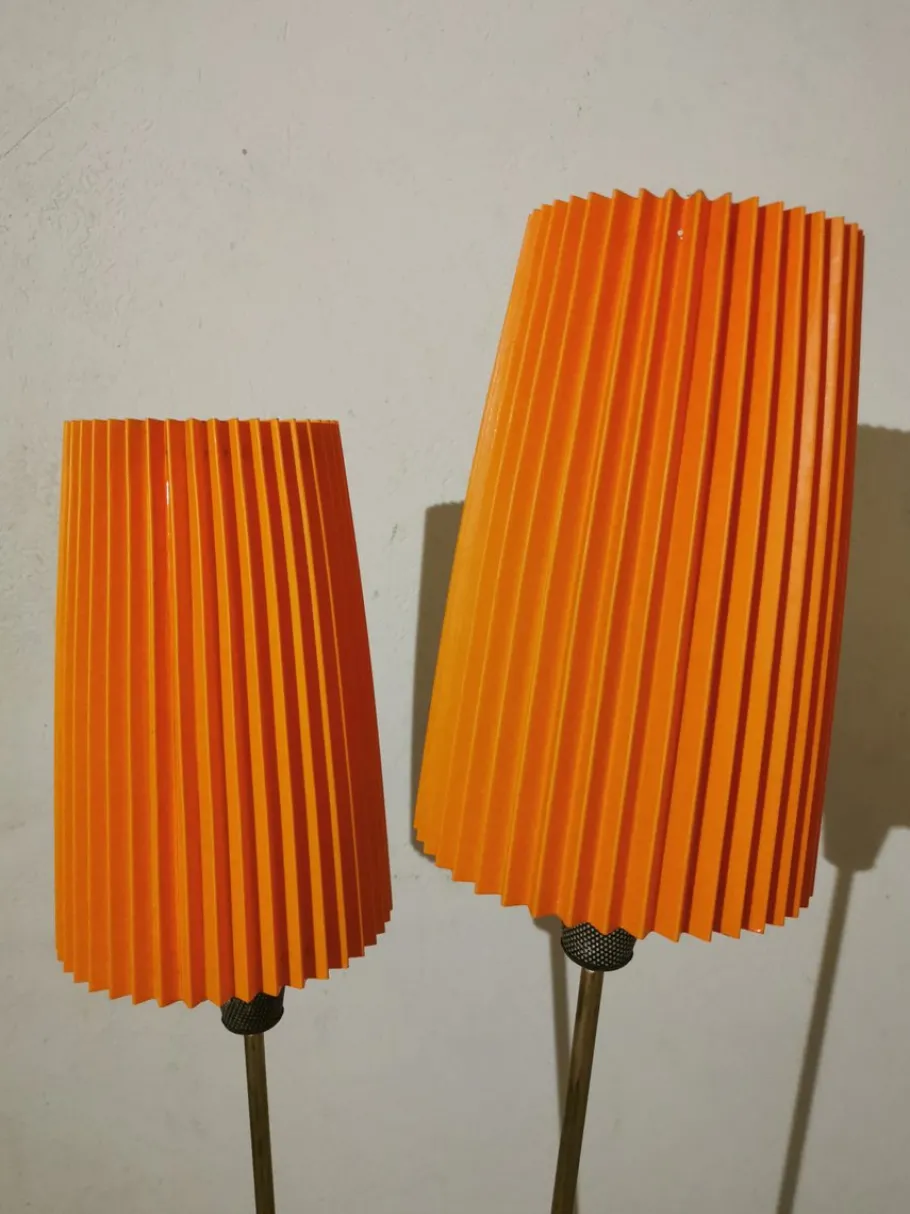 | Restoration and Damage Details | Patina consistent with age and use, Partially restored, Light wear consistent with age and use, Rewired and/or new electrical components, die Schirme wurden neu verklebt, der Messing- Überzug am Lampengestell hat teilweise Farbschäden |