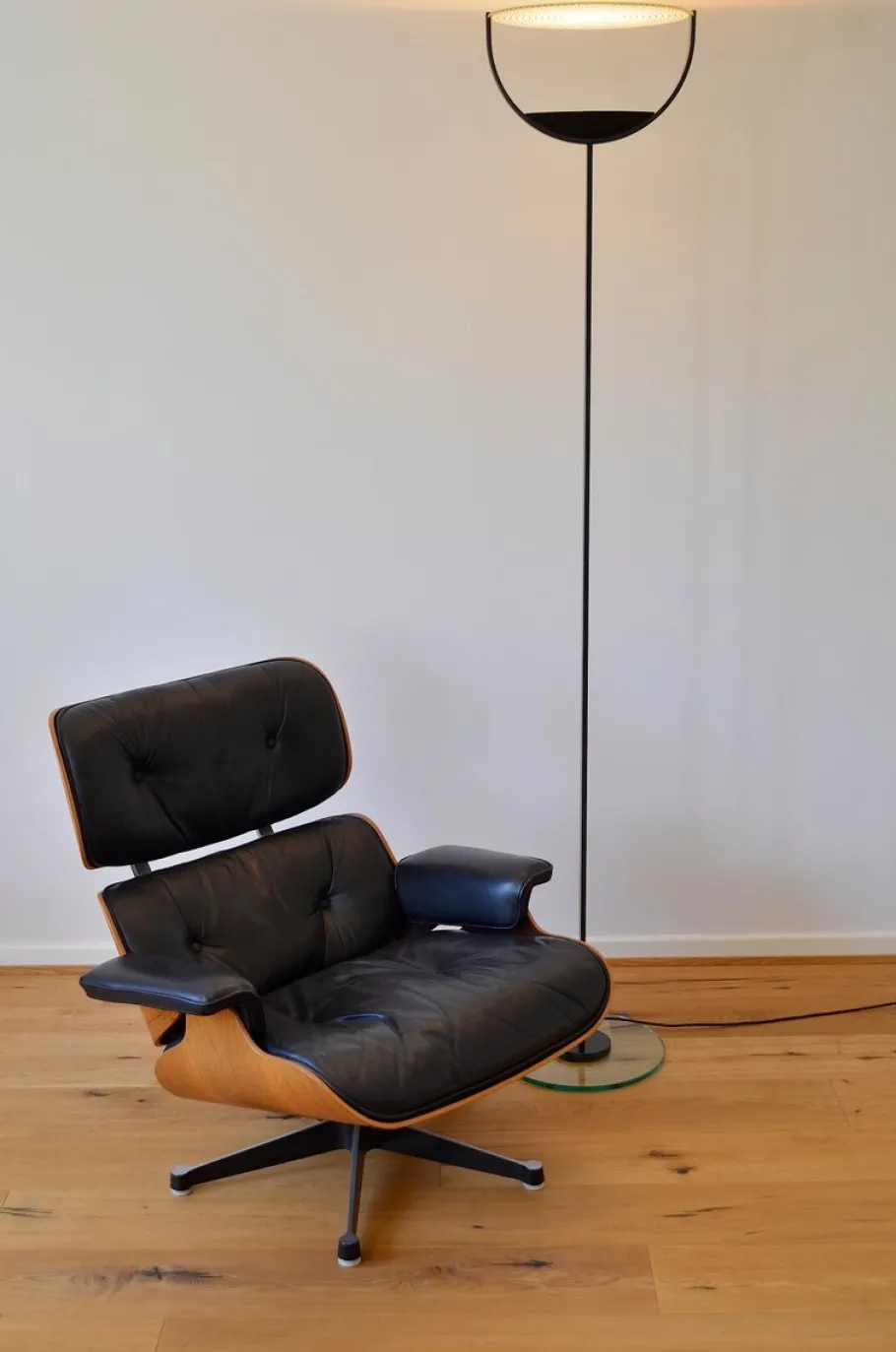 The lamp is painted anthracite and has a glass base and a glass reflector.