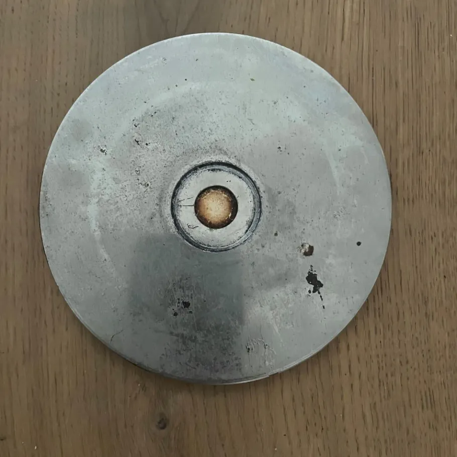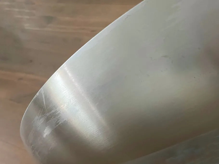 The item is in a good vintage condition with signs of wear consistent with age and use. Some scratches and wear on its shade (along the rim) and its diffuser.