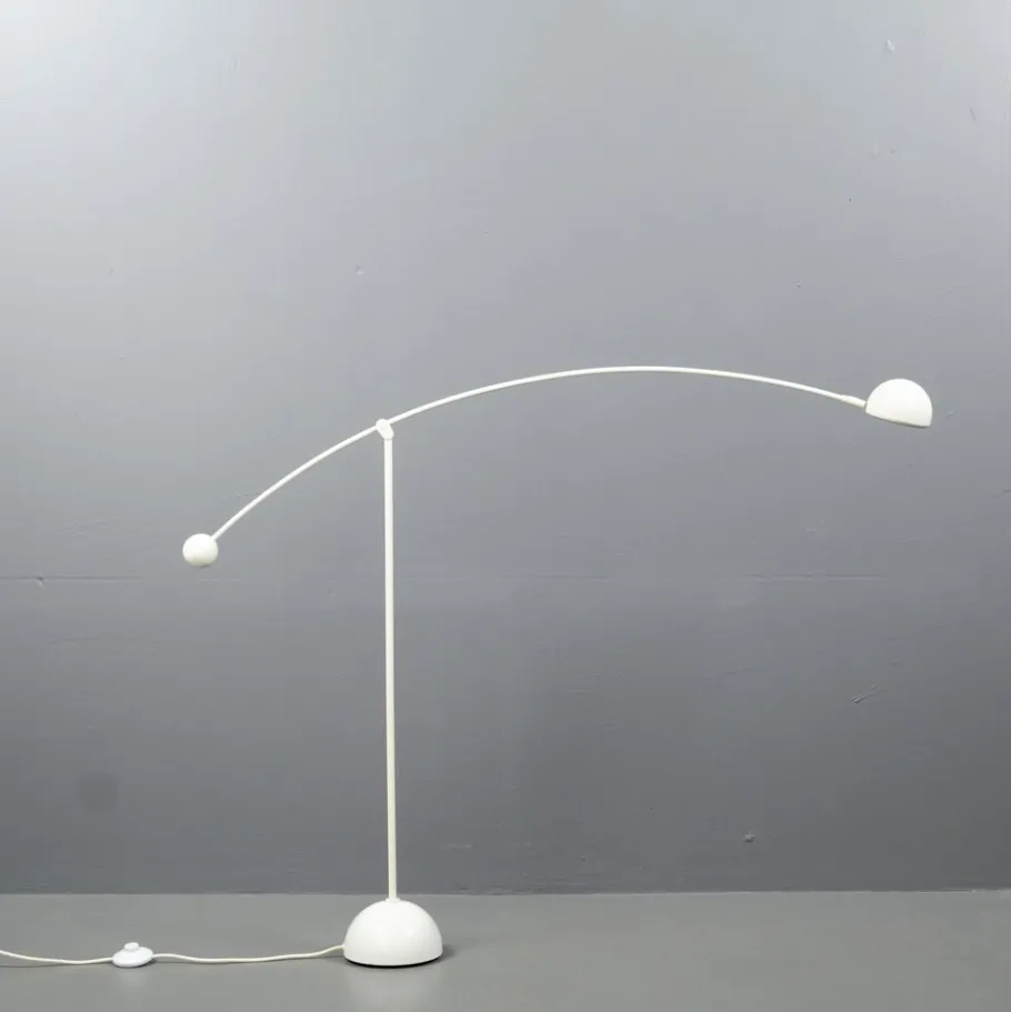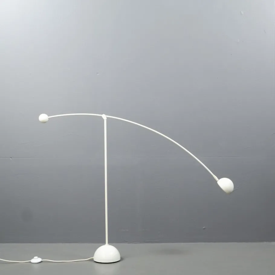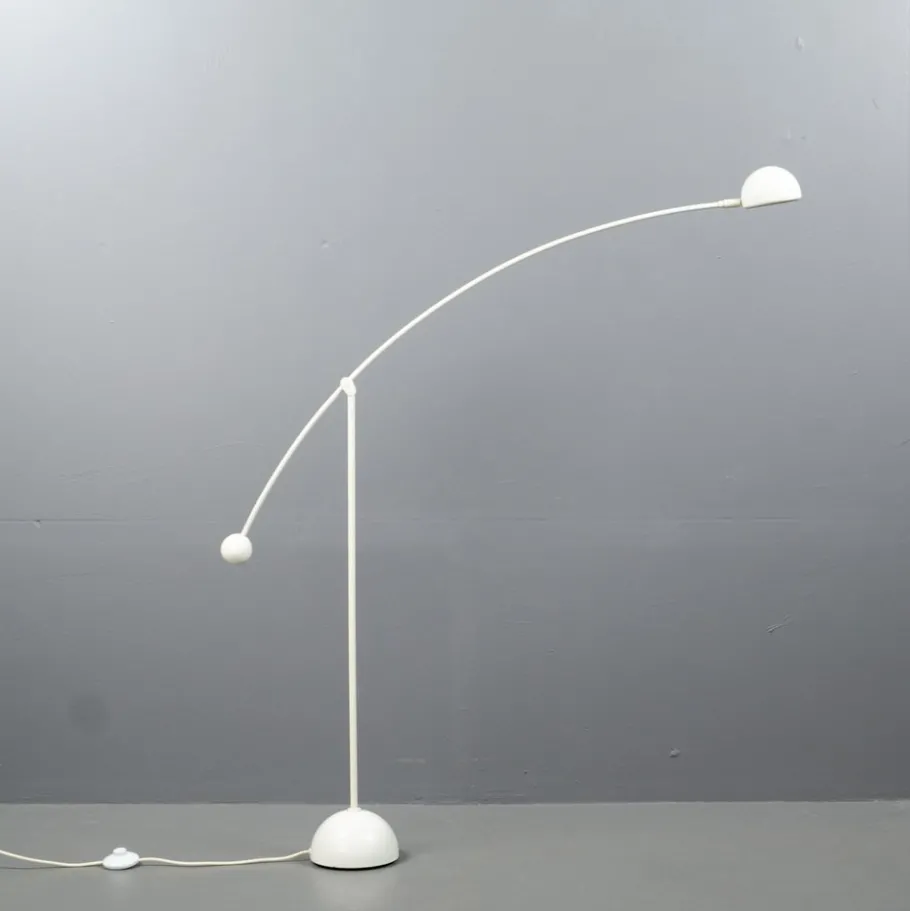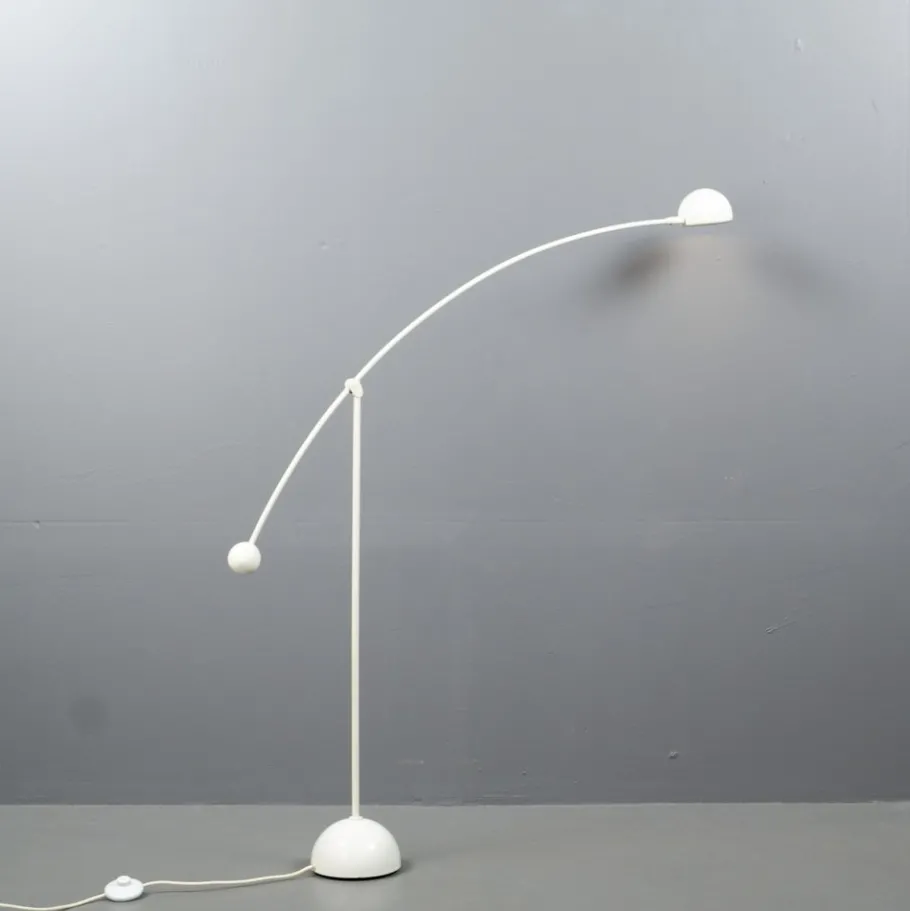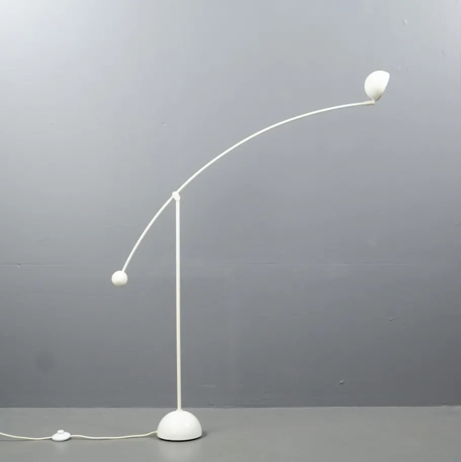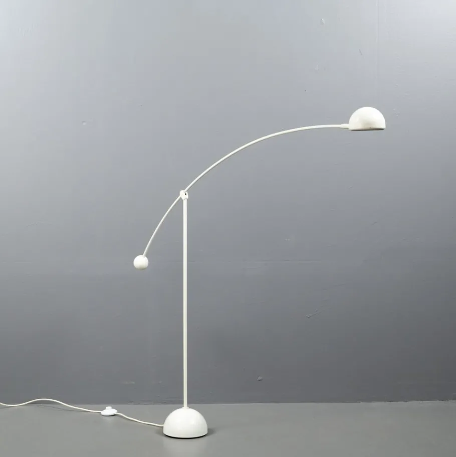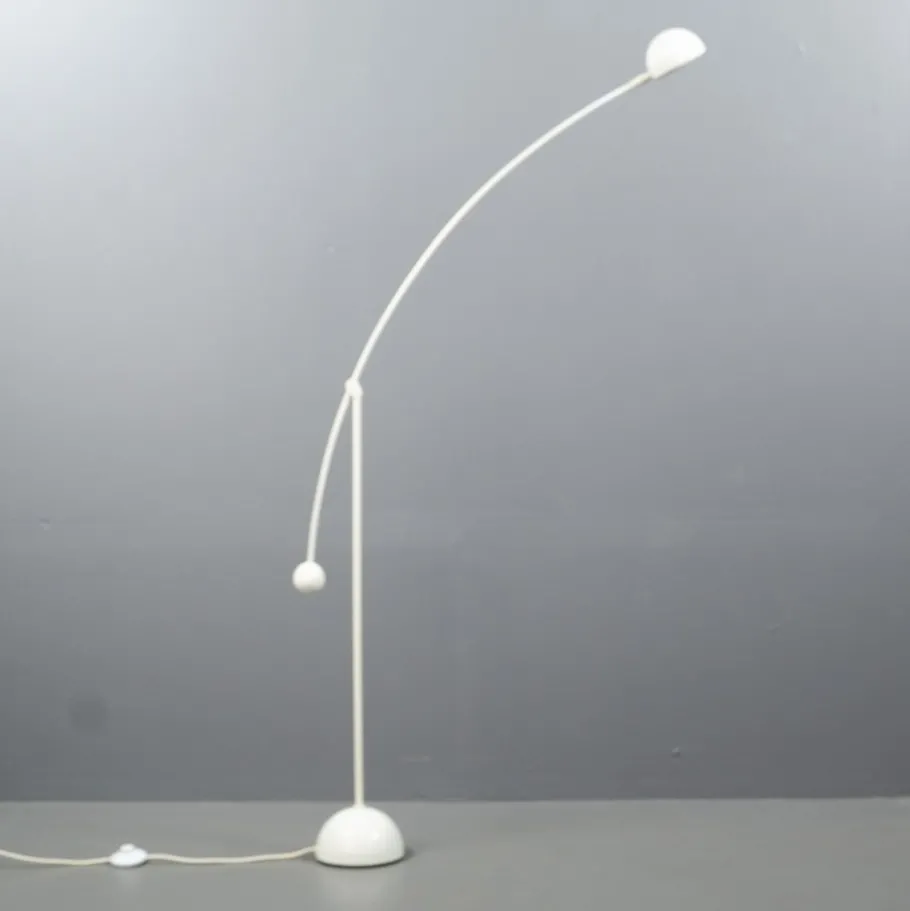 This Floor light not only brightens up the room, it shows 80s design at its best. The white metal wire arms is adjustable, the lamp is halogen.