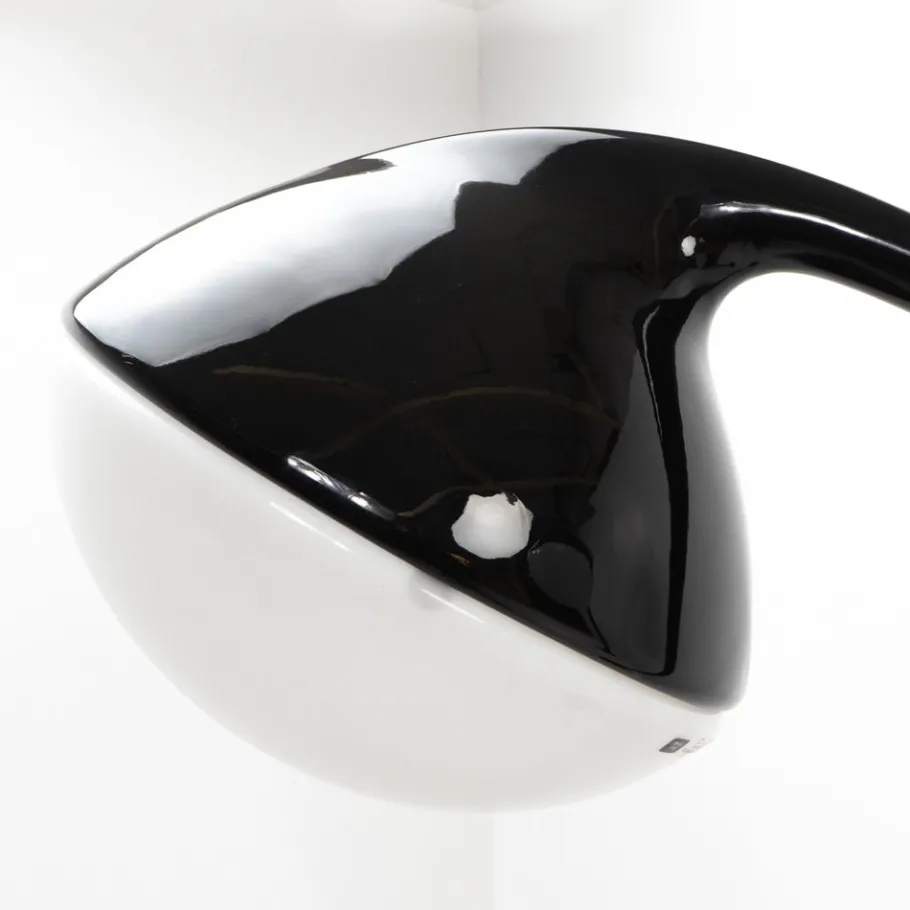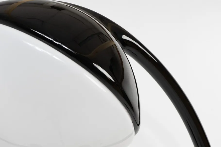 This black version of the Lampione, features a sleek stem made from Baydur polyurethane foam, a durable, weather-resistant material ideal for the outdoors. Its acrylic lampshade contrasts with the soft, natural form of the base, reflecting the bold use of colours and playful materials typical for the Pop Art era.