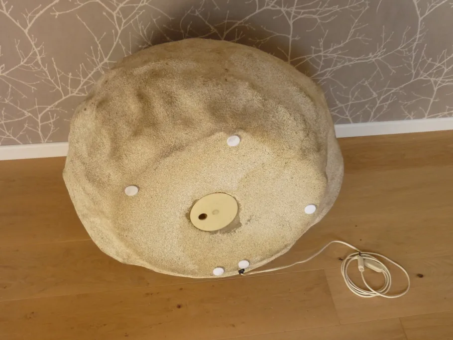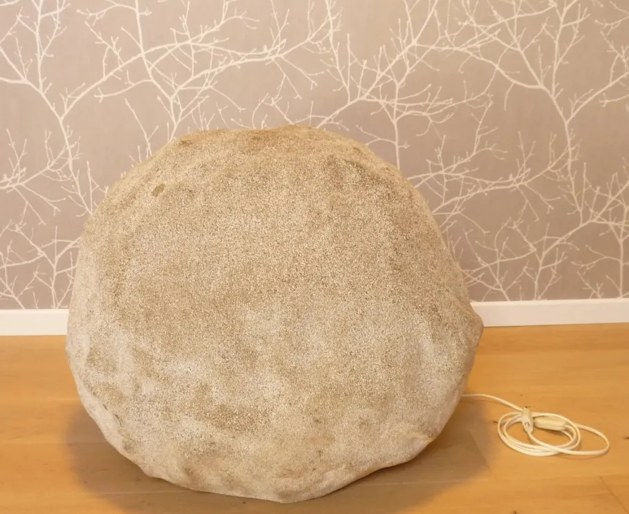 Fiberglass and sand for a very successful “stone” effect, which, placed individually or in groups, was a delight in the entrances of chic buildings in the 1970s.