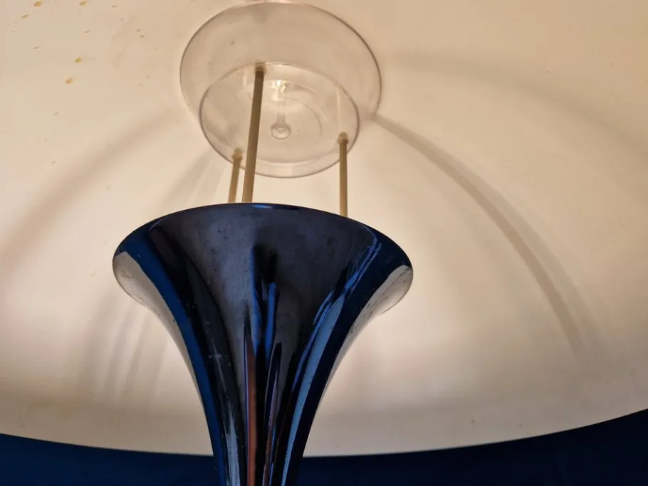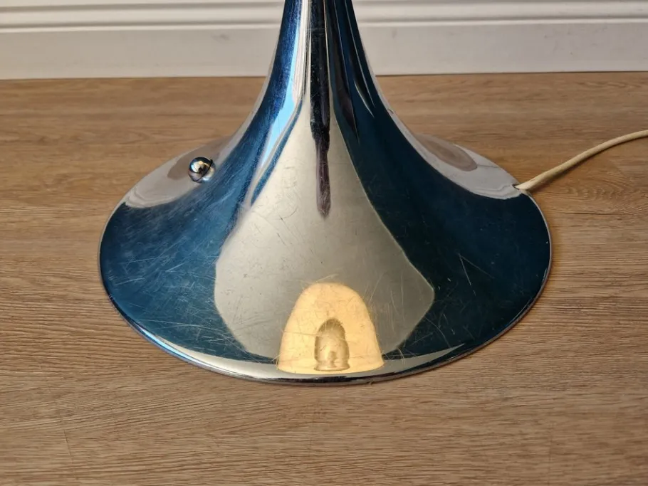 The condition is considered good, there are no cracks or chips, only the chrome plating has superficial minor scratches, the shade has minimal signs of wear.