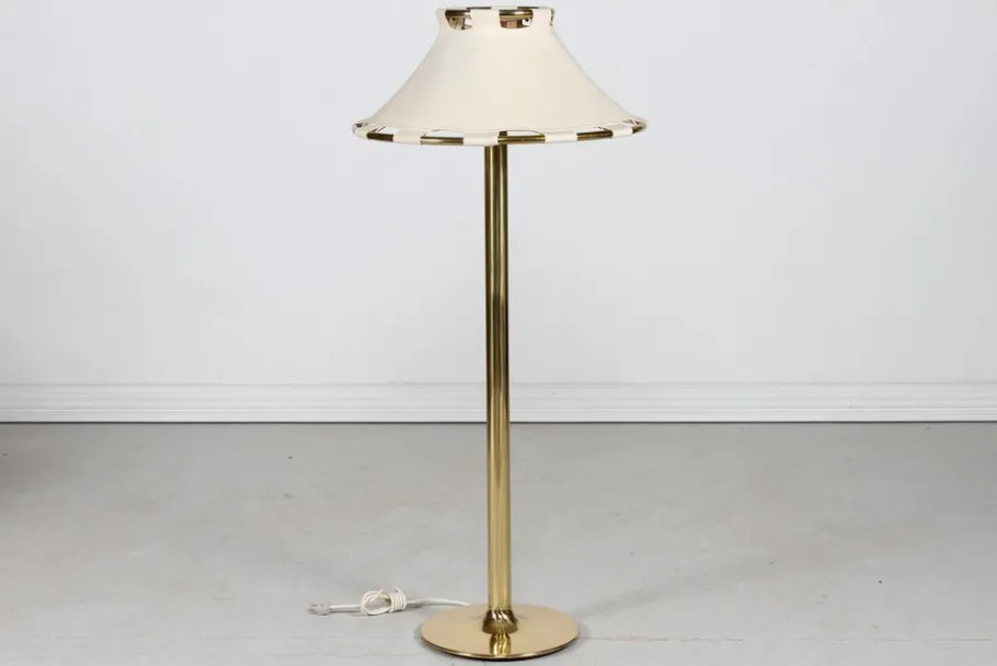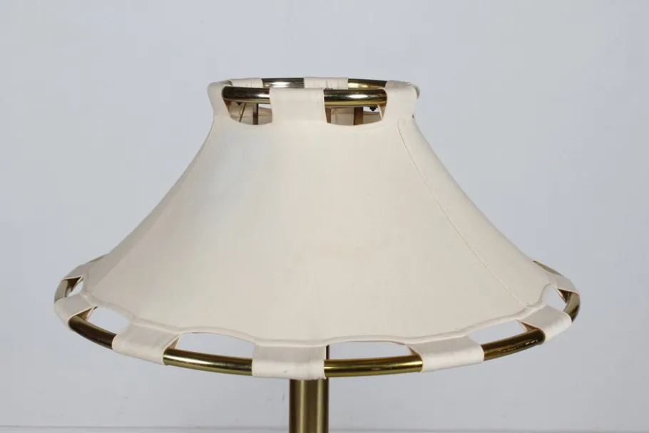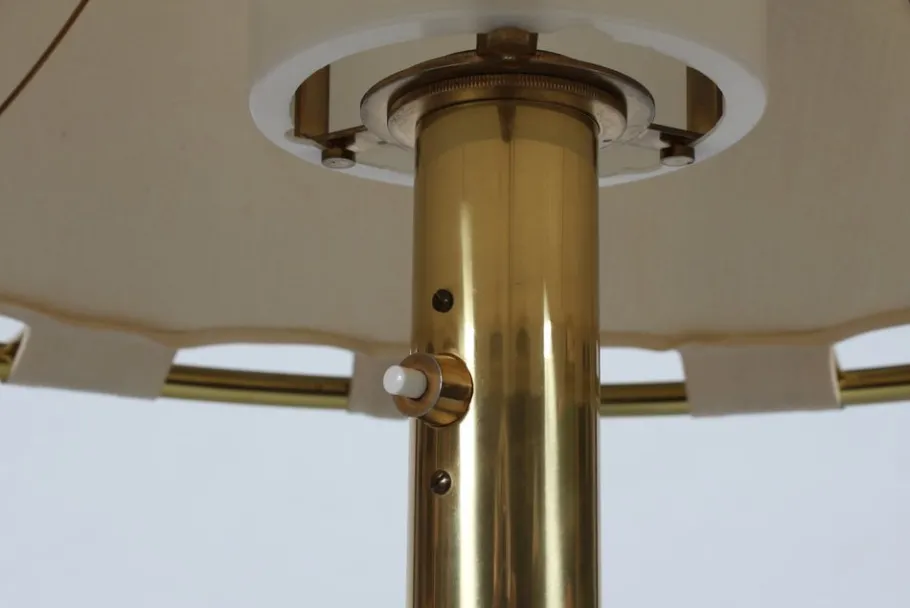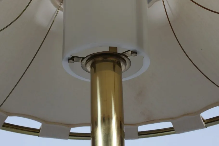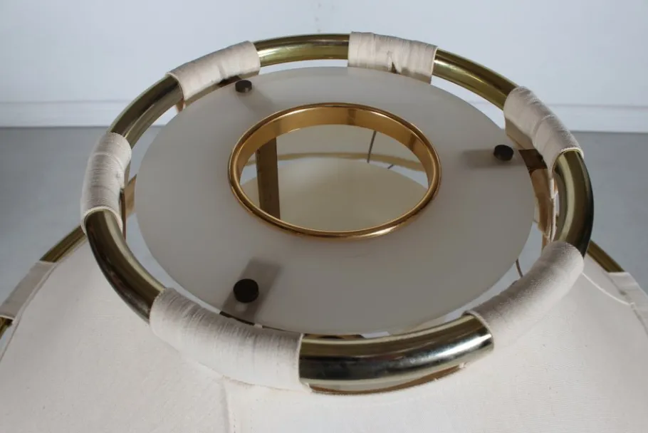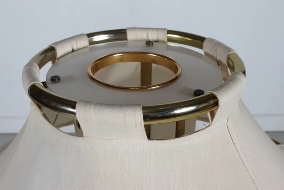 Mounted with a large shade stretched with natural white canvas inside which is the original acrylic diffuser.