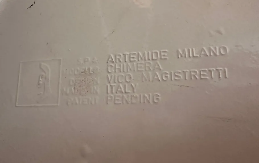 Made of translucent white thermoformed methacrylate with an elegant wavy shape, supported by a white lacquered metal base. Its fluid and sculptural design is a clear example of mid-20th-century Italian design.