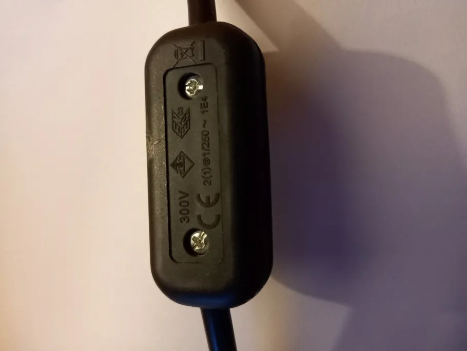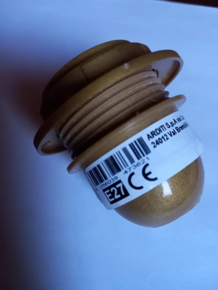 The lamp is composed of a cherry wood part and a decorated terracotta part.