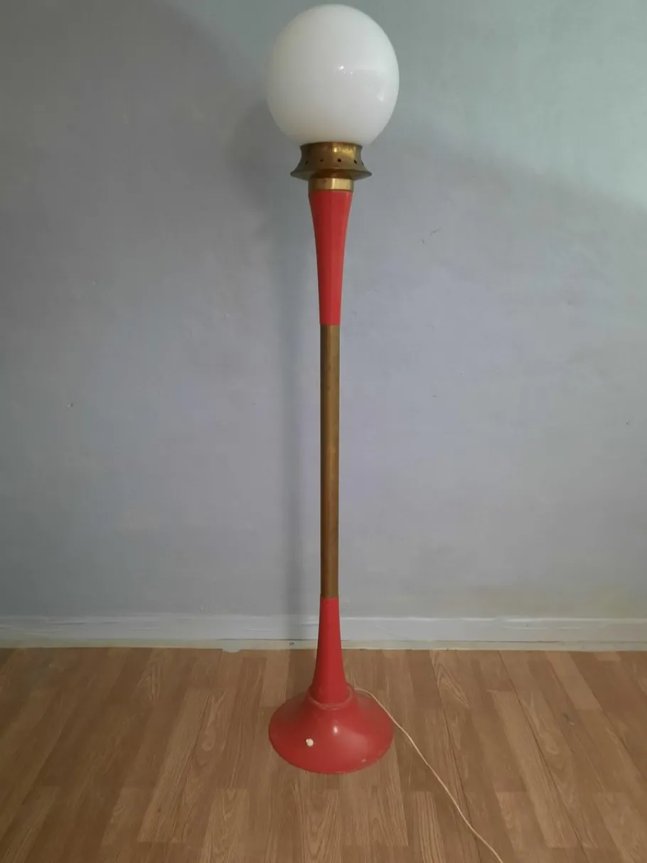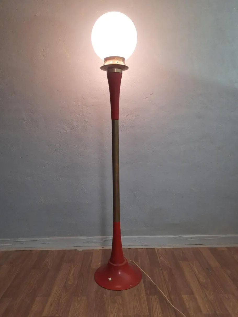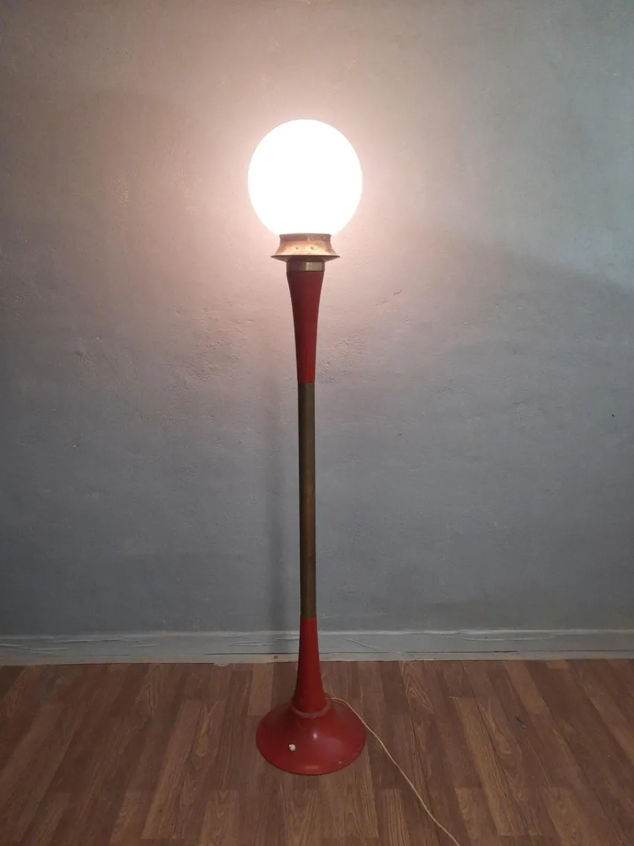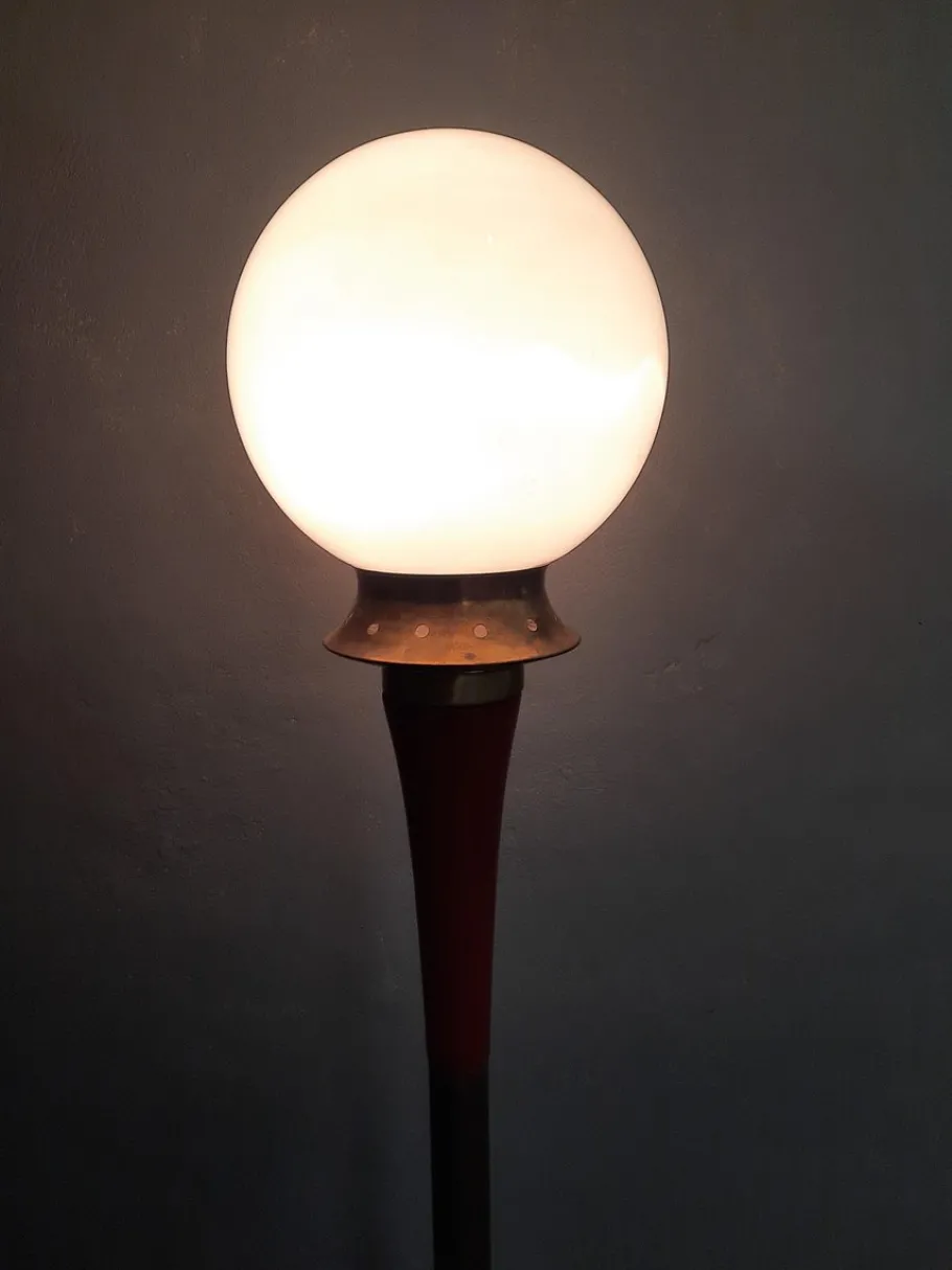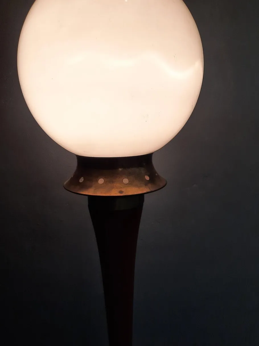 Opaline glass ball diffuser: key element of Mid-Century design, often used to diffuse a soft and enveloping light.