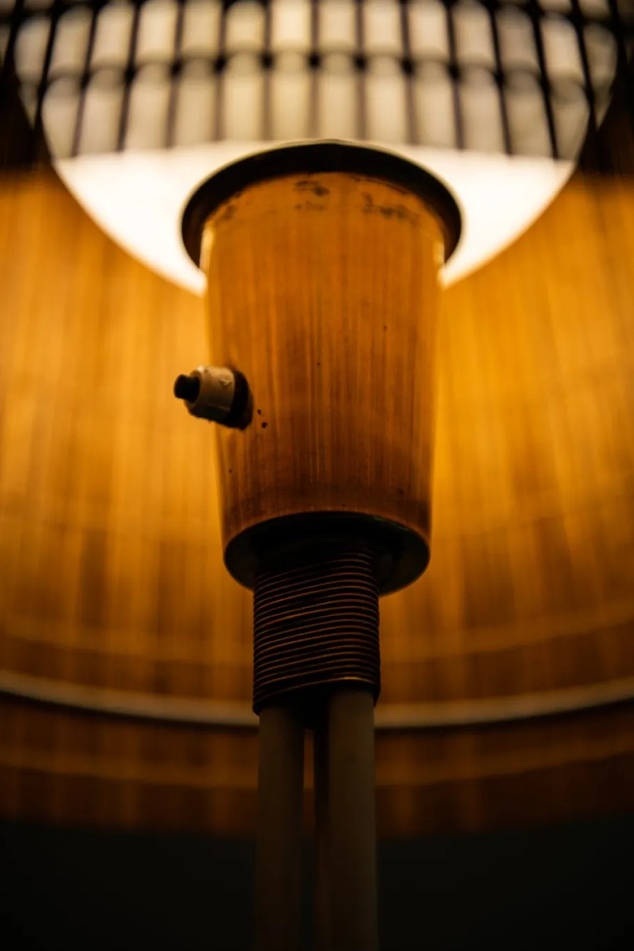 Lacqered metal, brass, cane and wood