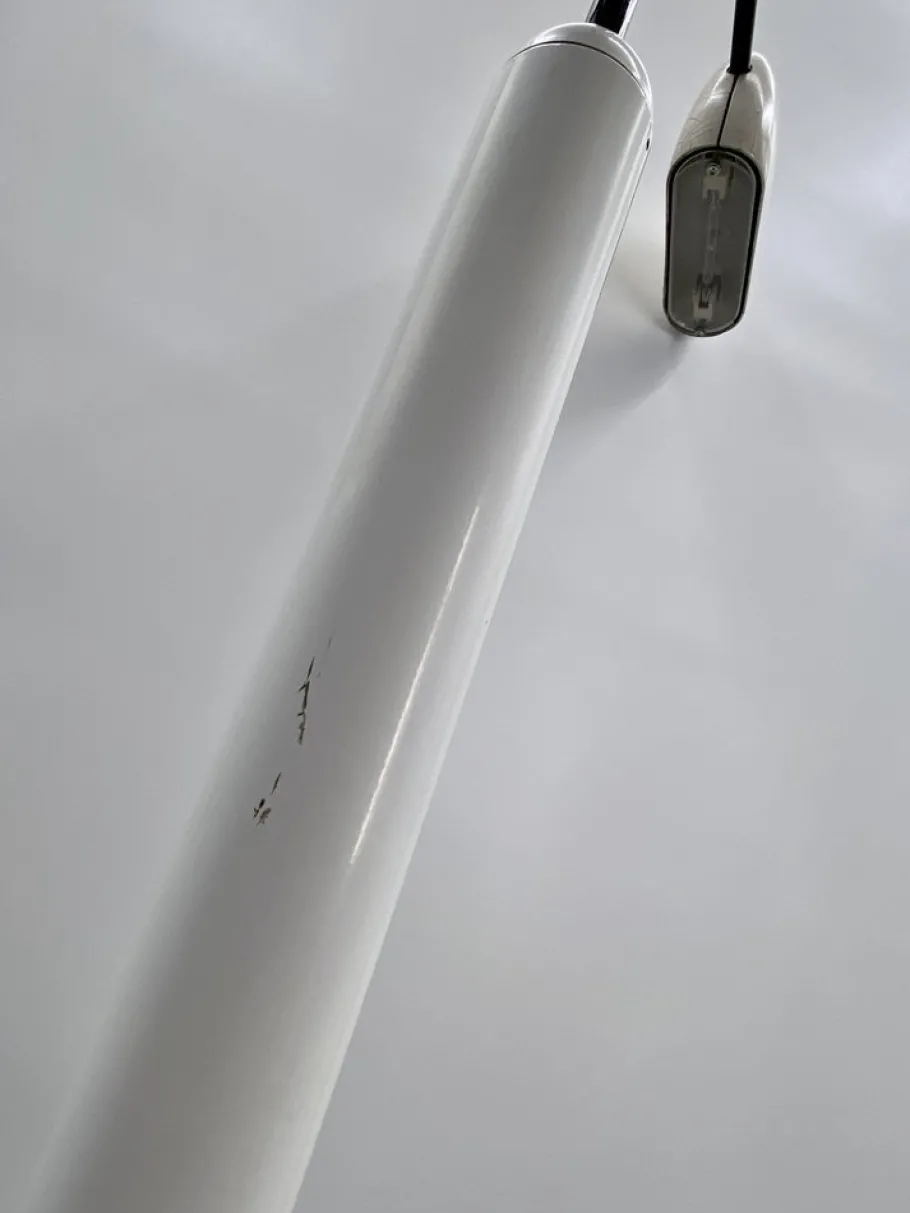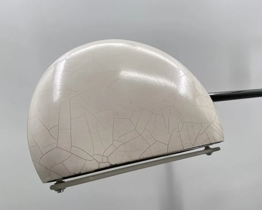 | Restoration and Damage Details | Heavy signs of use, Requires rewiring and/or new electrical parts, With cracks in the lamp head that give a nice patina,The lamp works, but the dimmer is defective and must be exchanged or removed, With scratches on the housing |