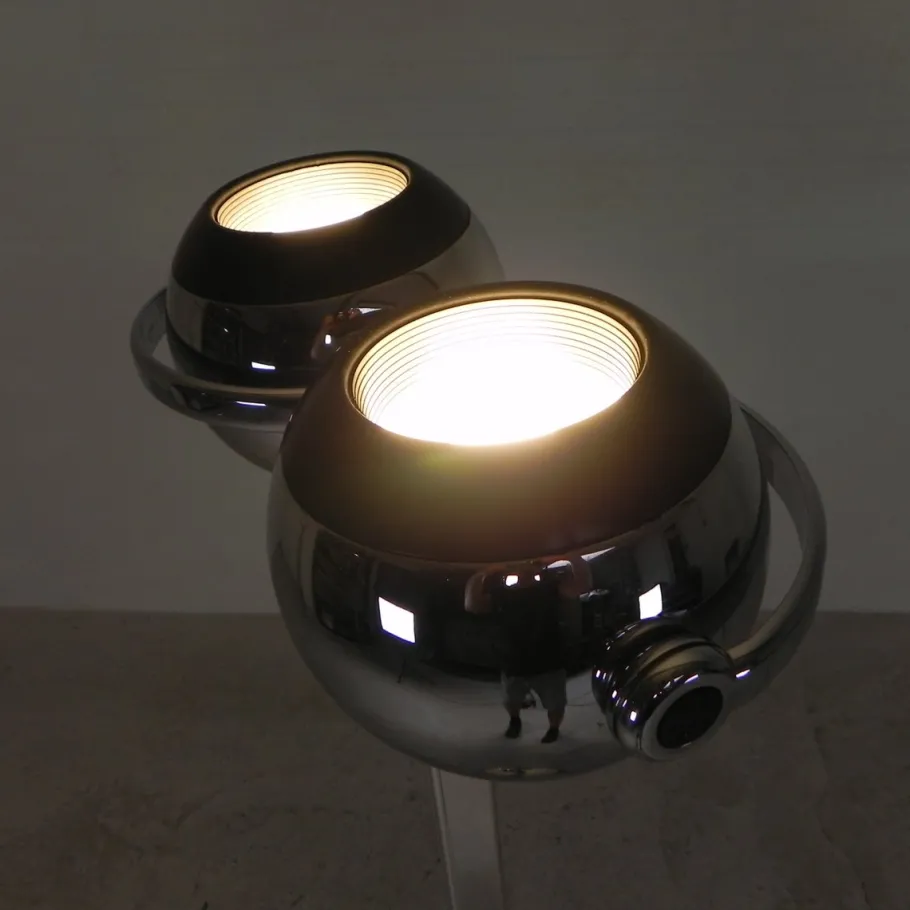 The chrome globes are rotatable.