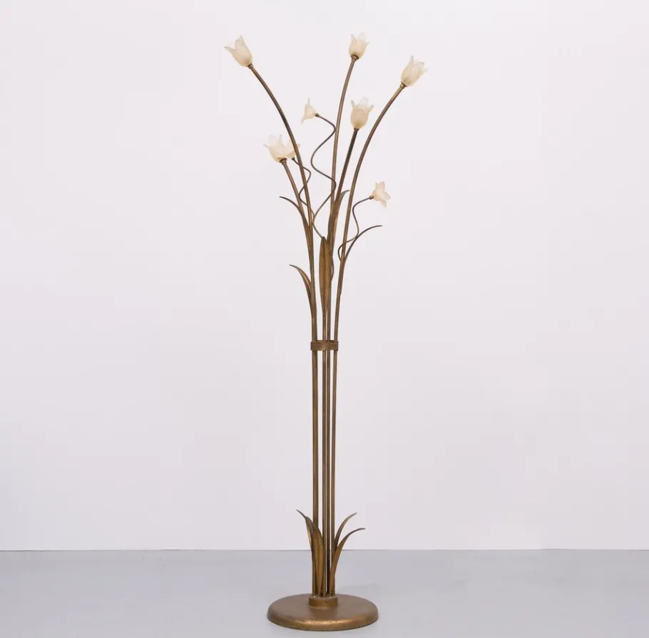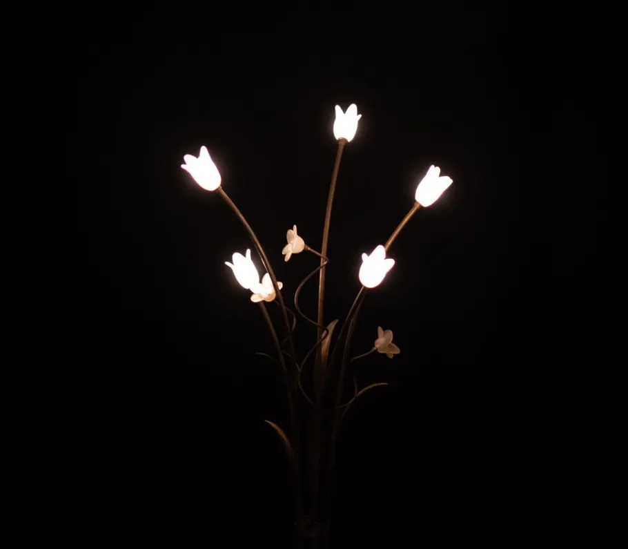 complete with leafs and lighting flowers comes in a antique Gold color .