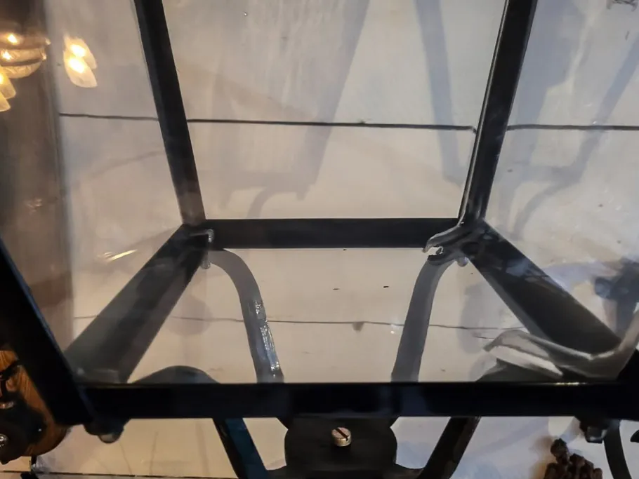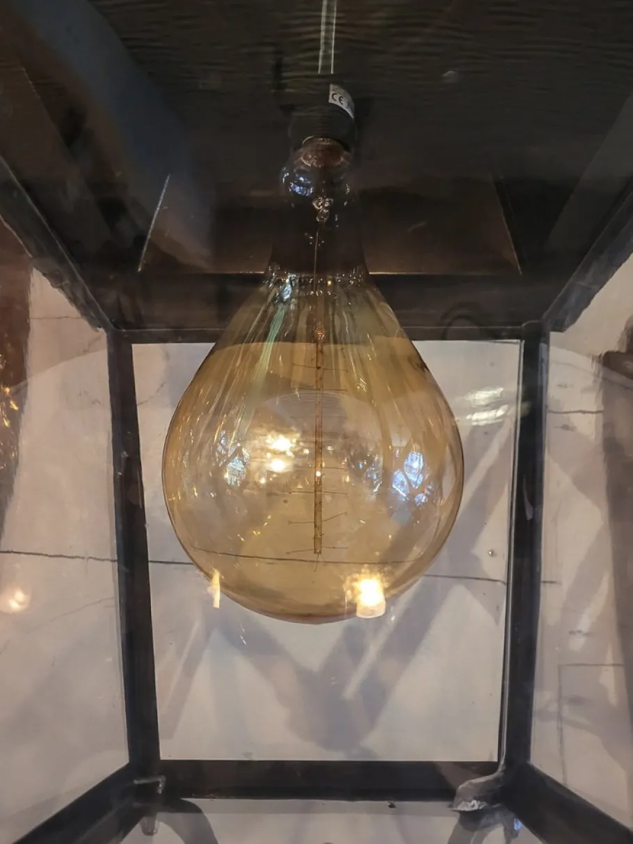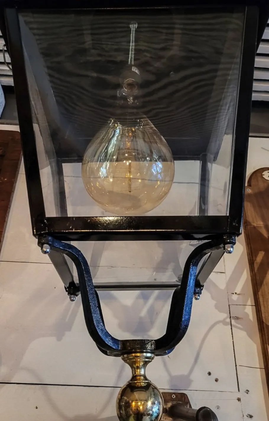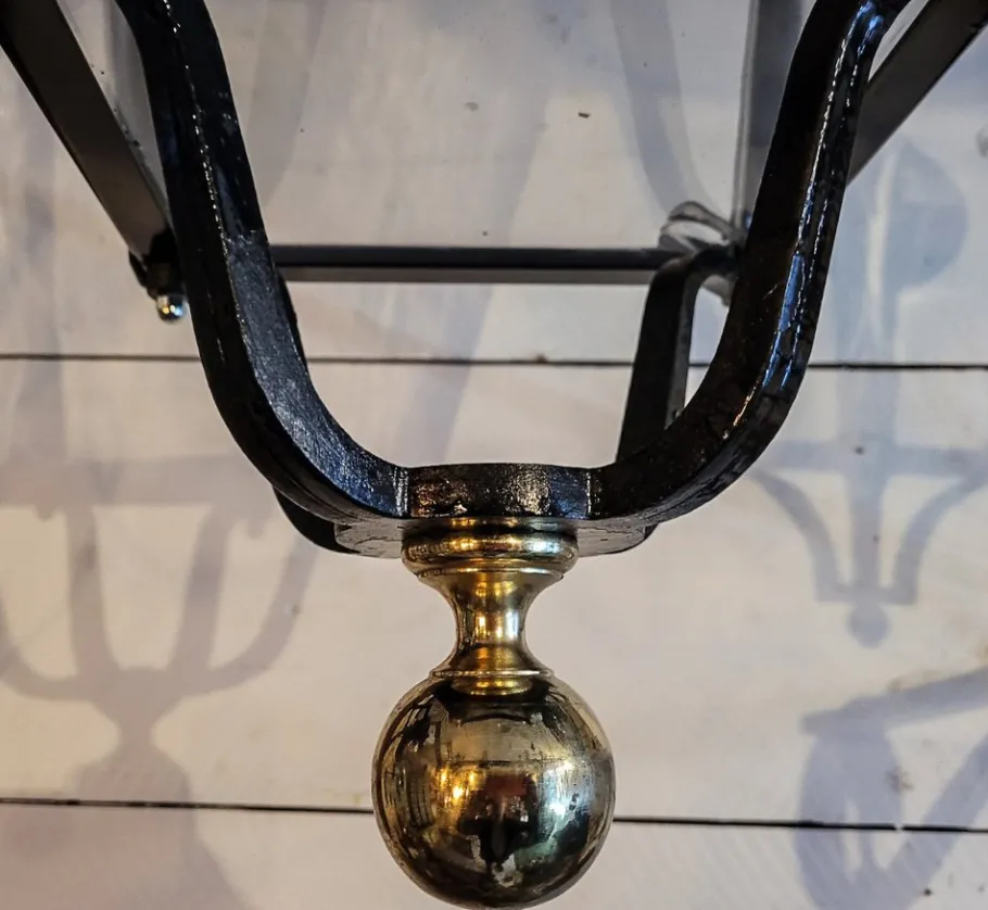 Cleaned, electrified to new, socket E 27, translucent PVC tray, brass ball.